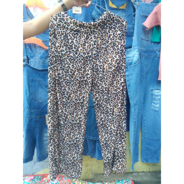Real Picture Celana Kulot Jumbo Big Size Jersey Motif Loreng Macan Tutul