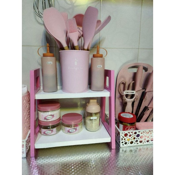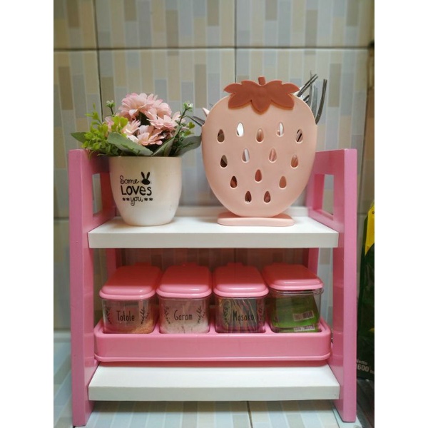 Rak Miring Multifungsi Rak Bumbu Dapur Serbaguna Rak Kayu Duduk Rak kosmetik Estetik