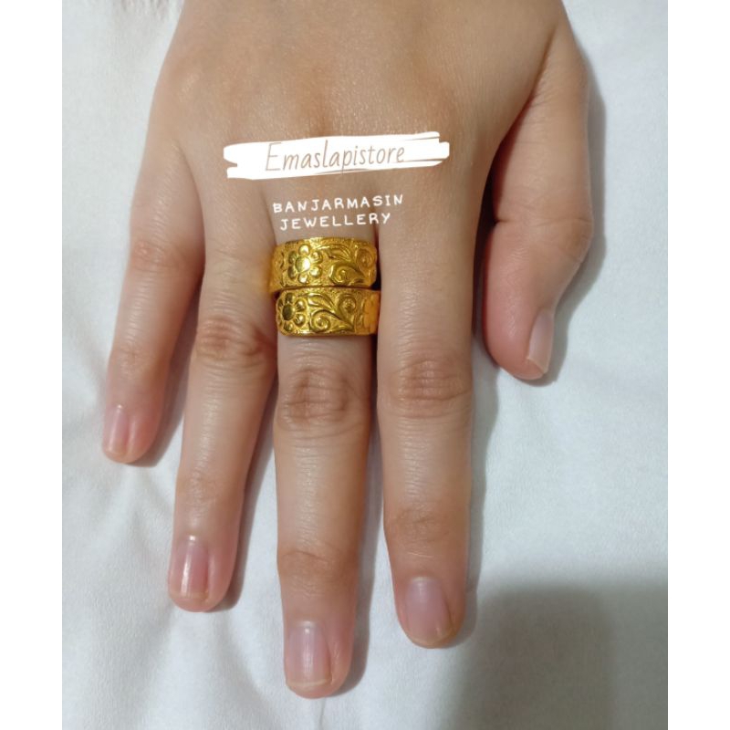 Cincin Medium Selisih Lembar Bunga Lapis Emas 999 Banjar