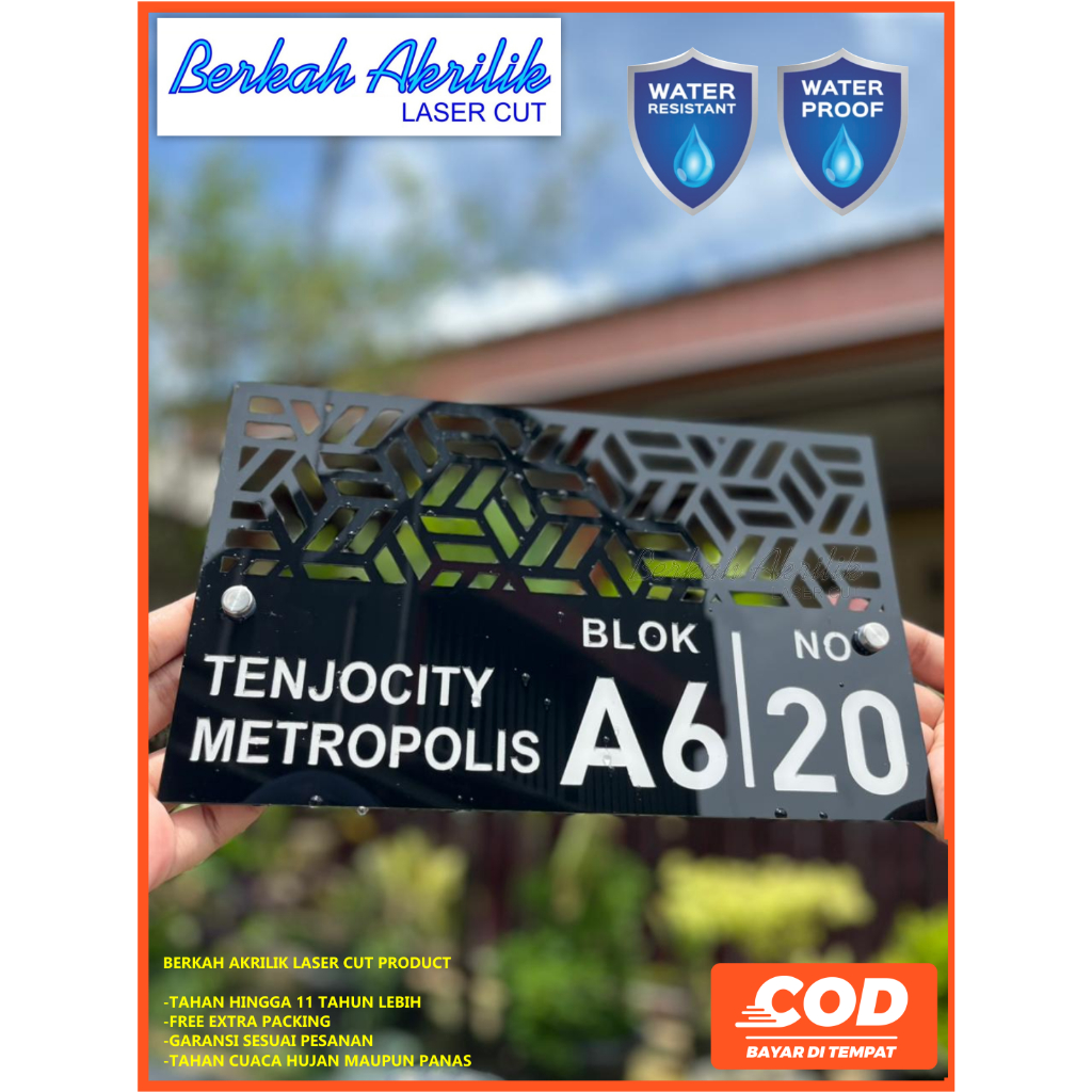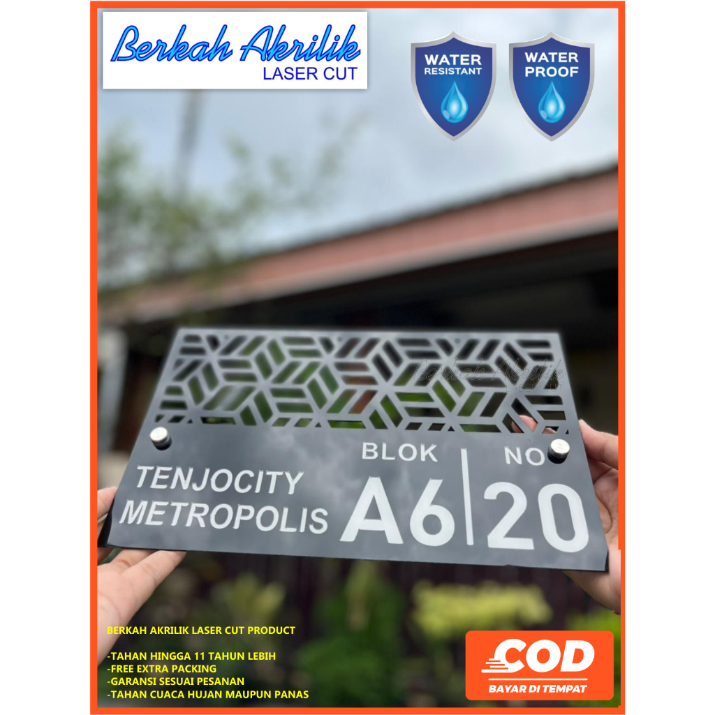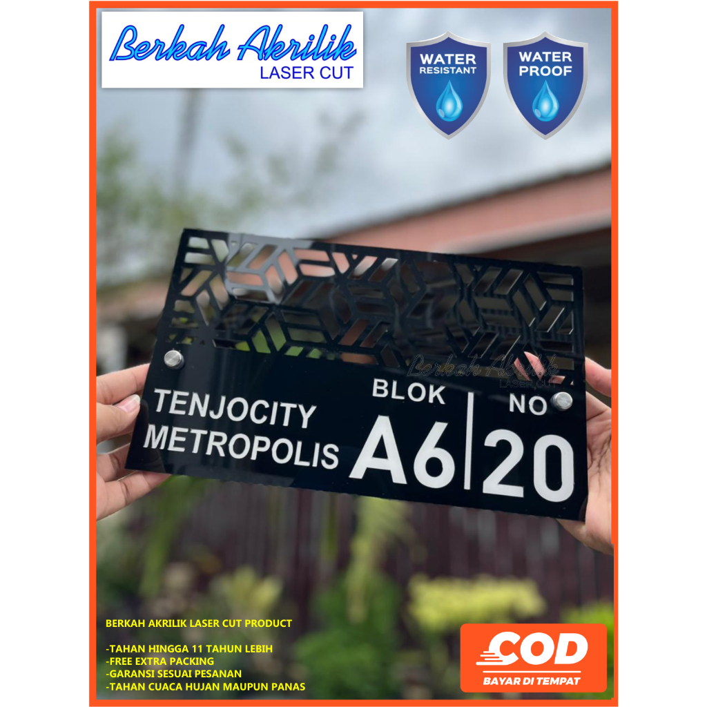 nomor rumah akrilik type aesthetic minimalis modern laser cutting + pen stainless water proof