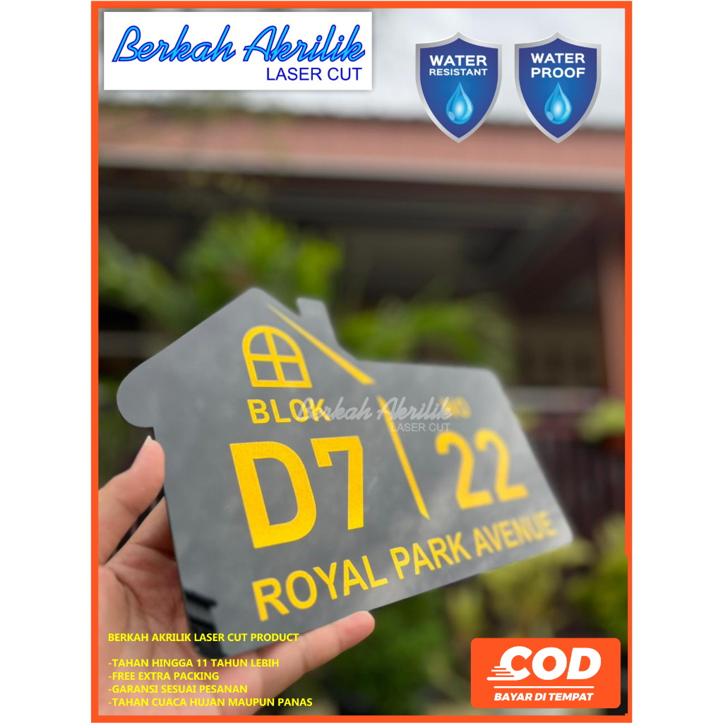 NOMOR RUMAH 28 x 18 cm / BAHAN ACRYLIC / LASER CUTTING