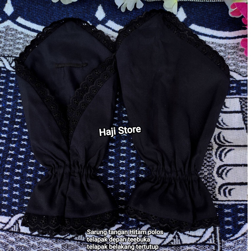 sarung tangan sholat haji umroh bayak varian model warnah hitam dan puti