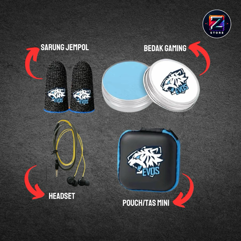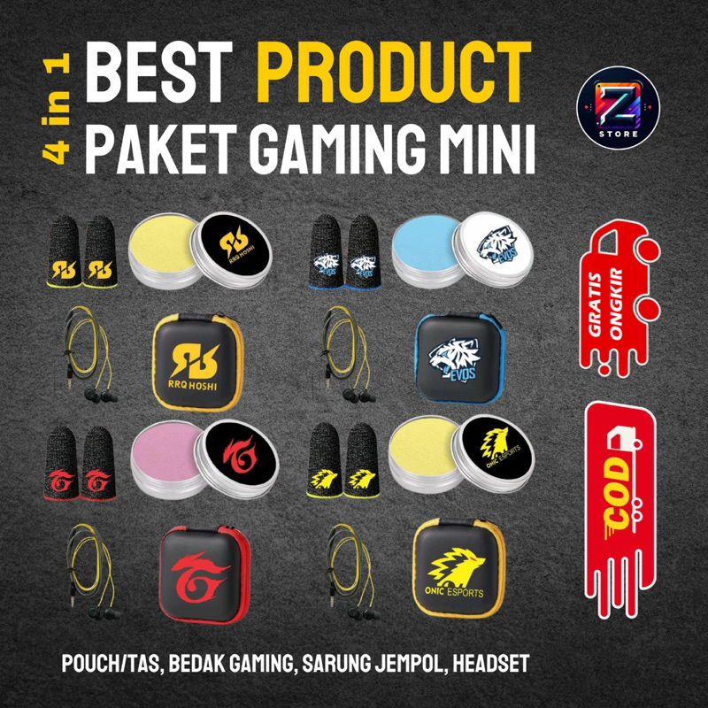 ZETTSTORE Paket Gaming Aksesoris Game 4 in 1 Lengkap Dengan Bedak Gaming Sarung Jempol Headset Dan Pouch