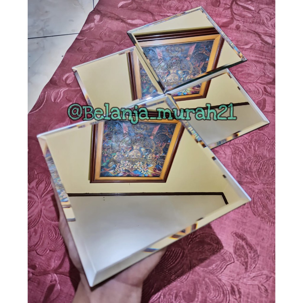 Kaca Cermin BEVEL Kotak 20 x 20 cm Dekorasi Dinding