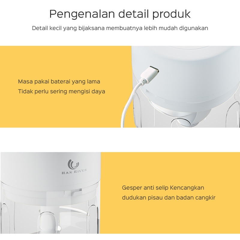 [Pengiriman Dari Banjarmasin]HAN RIVER Blender Bumbu Dapur Mini Chopper 250ML Penggiling Portable