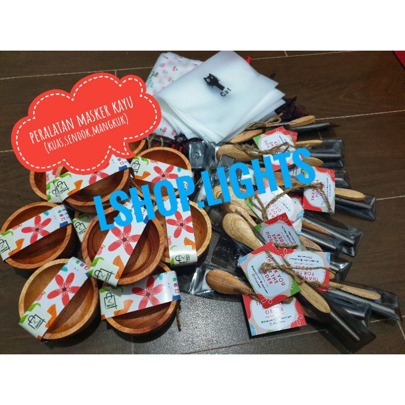 READY-Alat Masker Wajah 1Set,100% Kayu FoodGrade-free POUCH(1Kuas,1Mangkuk,1Sendok,1Pouch)