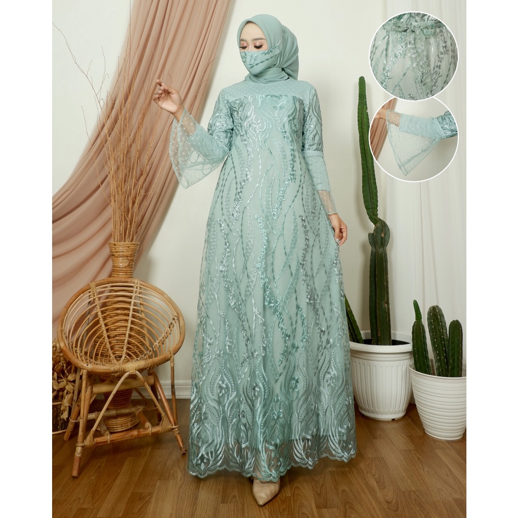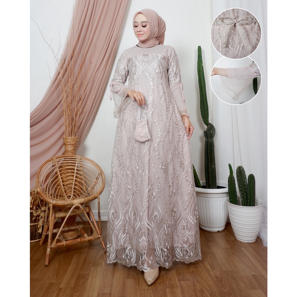 AF. GAMIS DIANA GAMIS MODERN GAMIS PESTA GAMIS WISUDA GAMIS KONDANGAN GAMIS KEKINIAN BAJU SERAGAM GAMIS TULLE DRESS MODERN DRESS PESTA OUT FIT WANITA FASHION MUSLIM