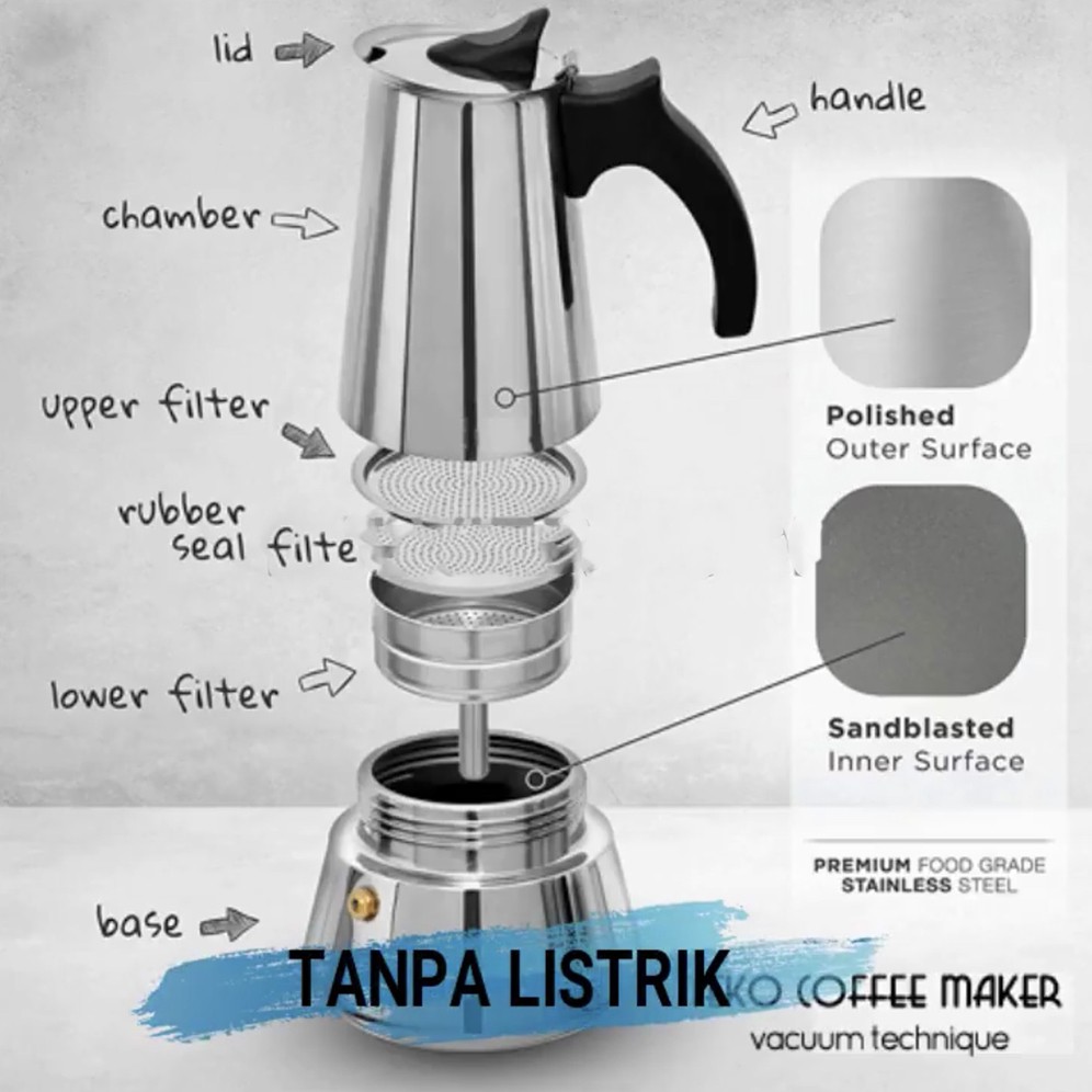 OneTwoCups Espresso Coffee Maker Moka Pot Teko Seduh Stovetop Filter Z20 - Z21