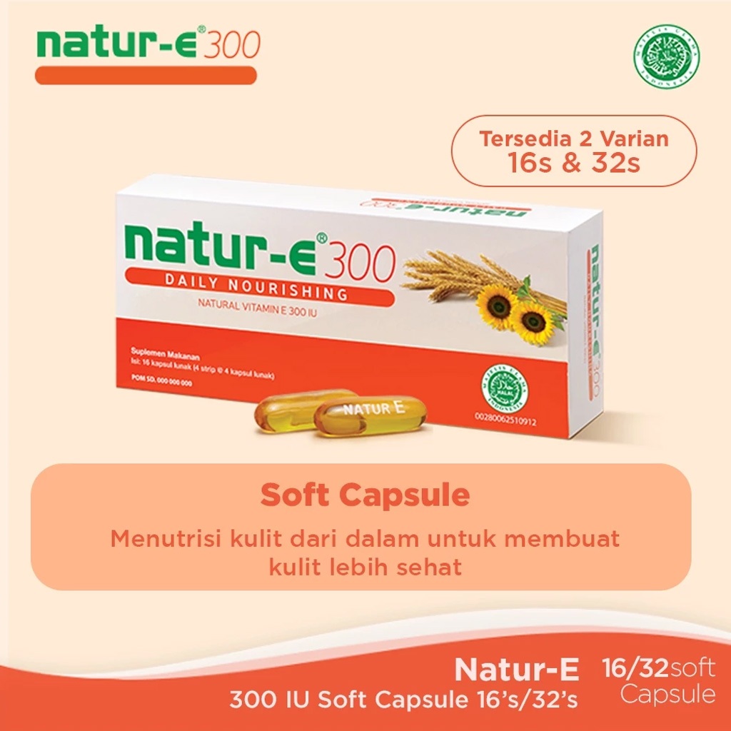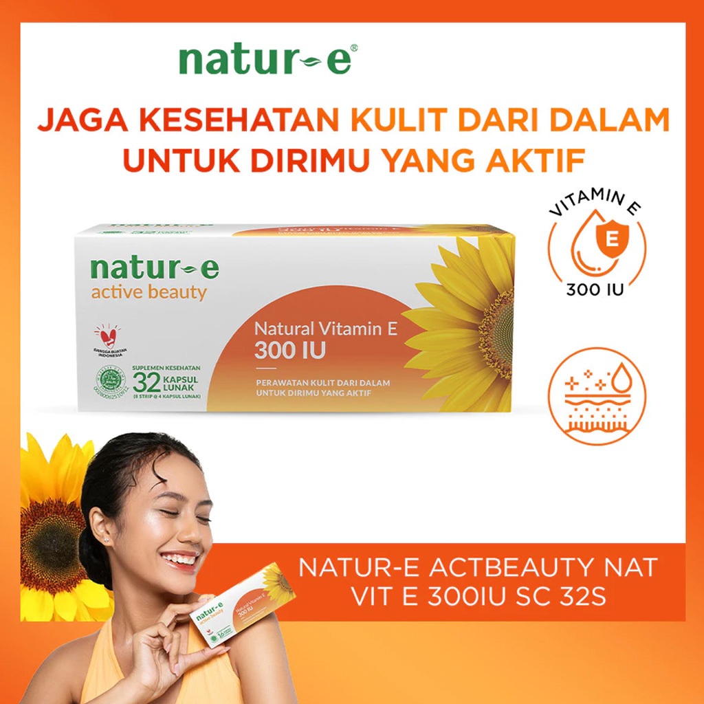 NATUR-E - ACTIVE BEAUTY CAPSULE SUPPLEMENT ( 16 | 32 Kapsul ) - Suplemen Natural Vitamin E 300 IU