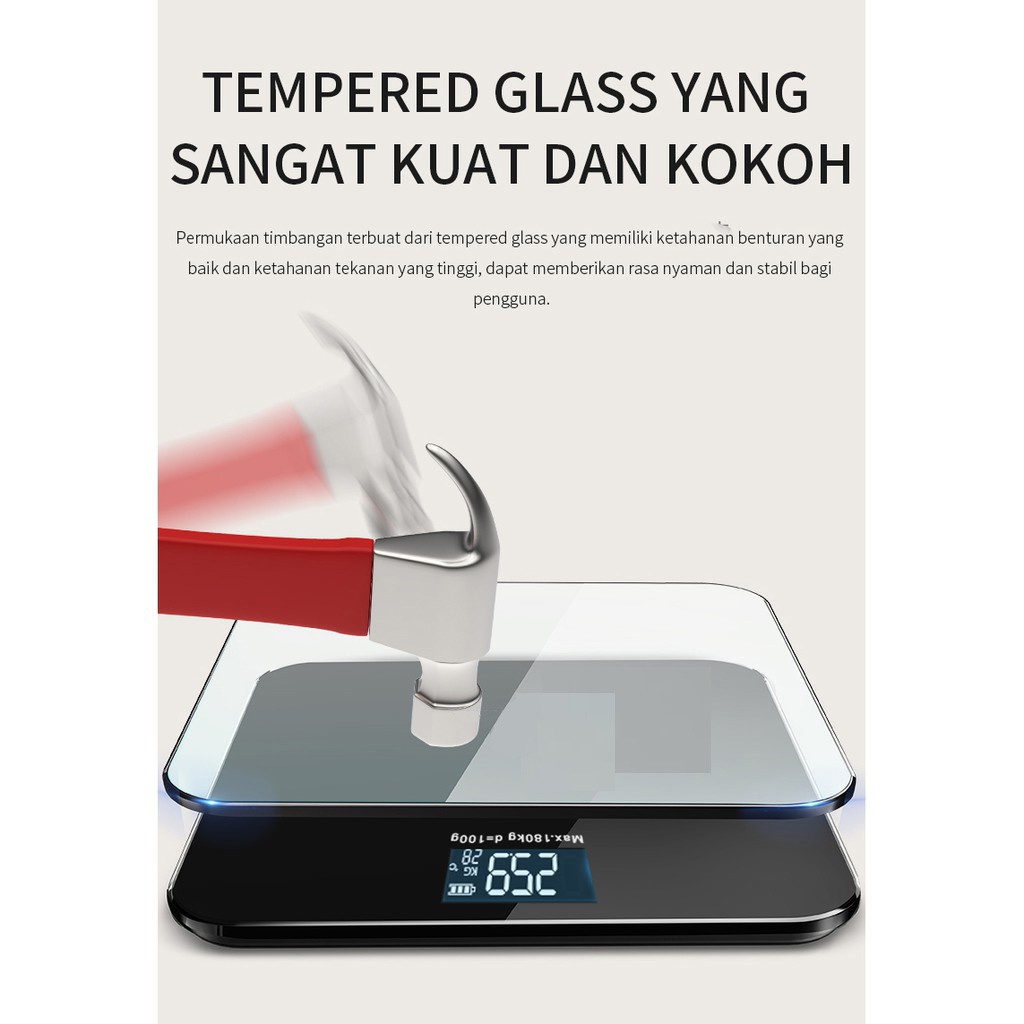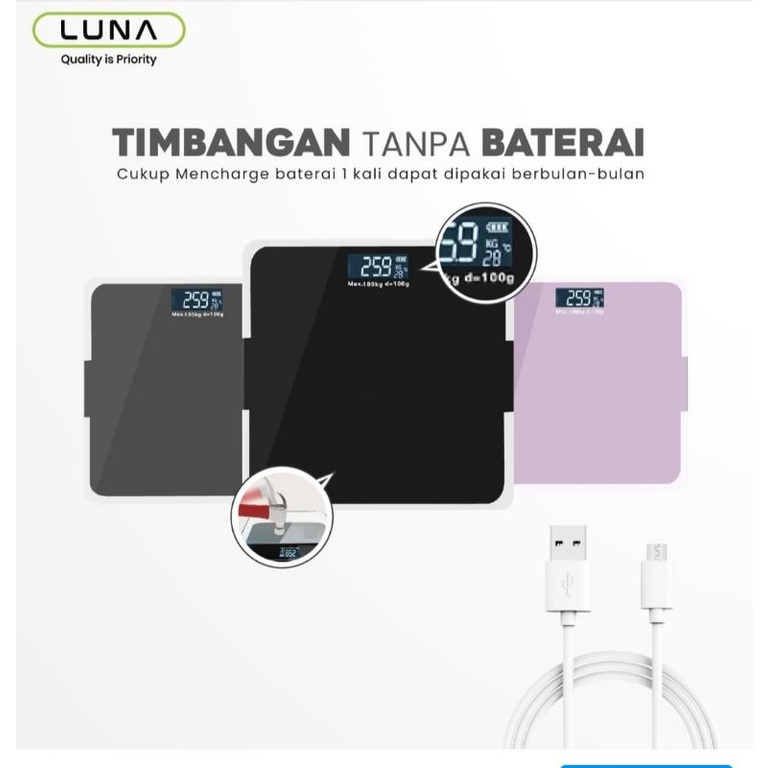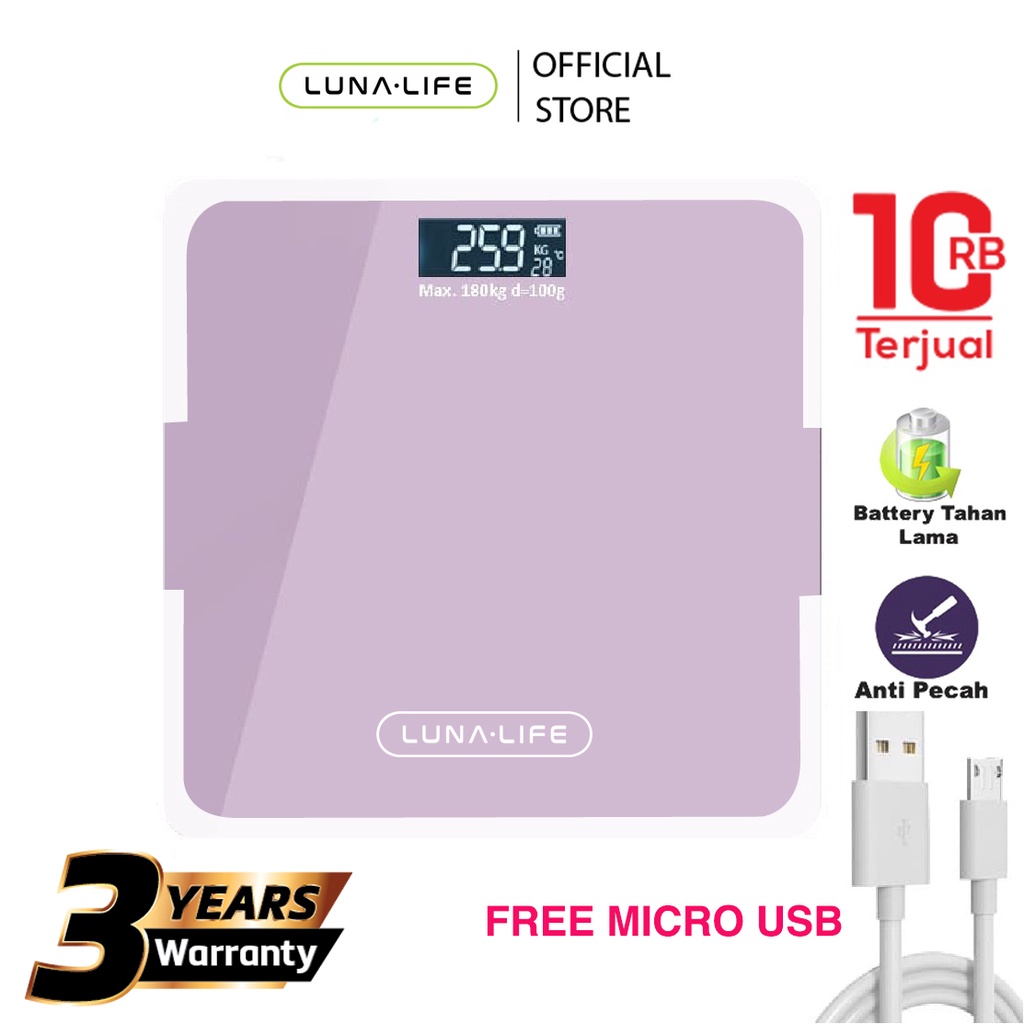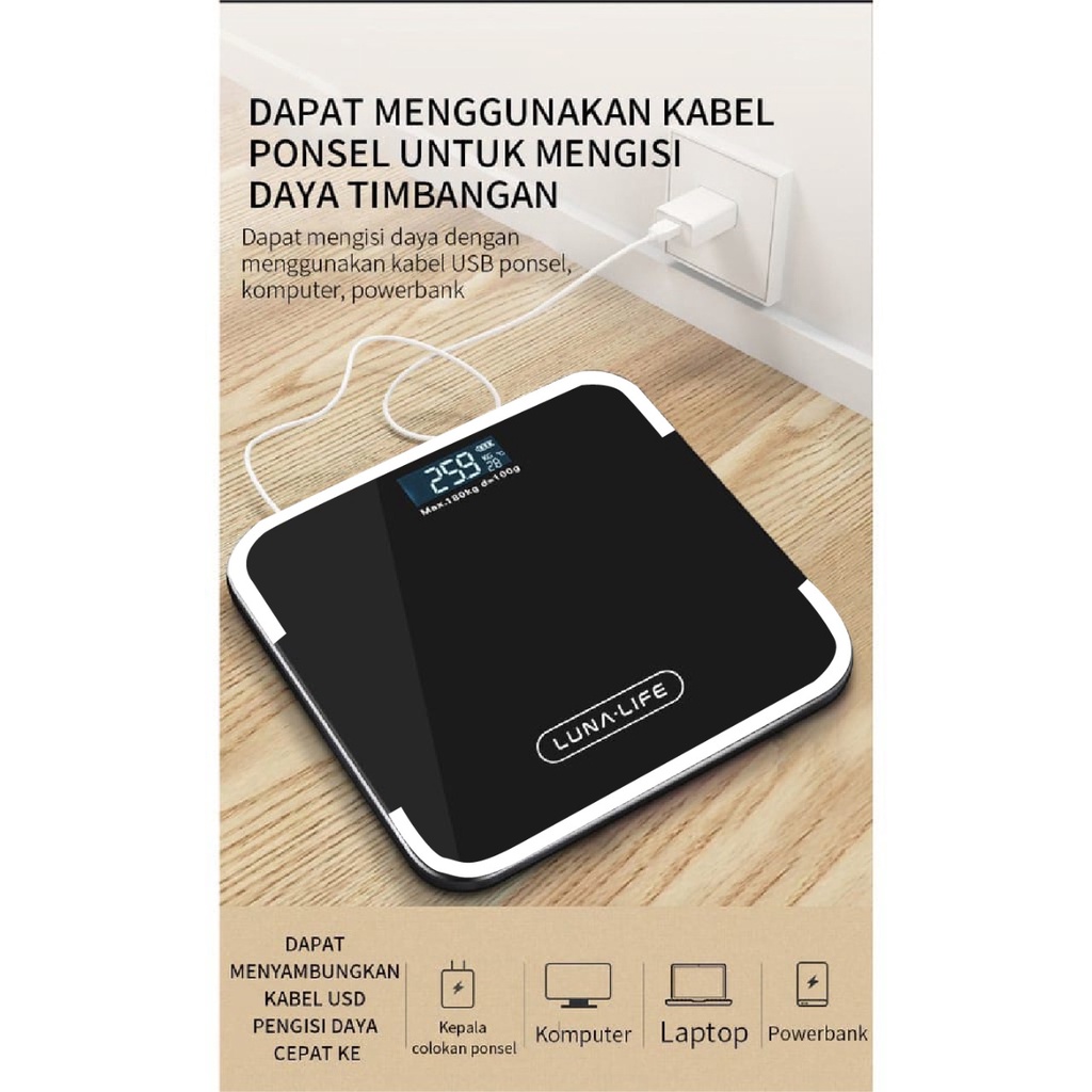 LUNALIFE Timbangan Badan Digital 28cm With USB Charging Anti Pecah With LCD GARANSI 3 TAHUN Official