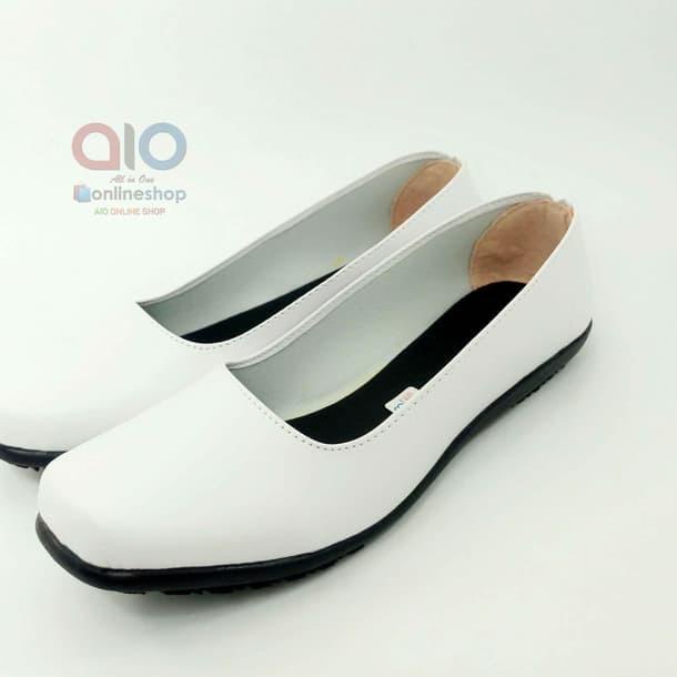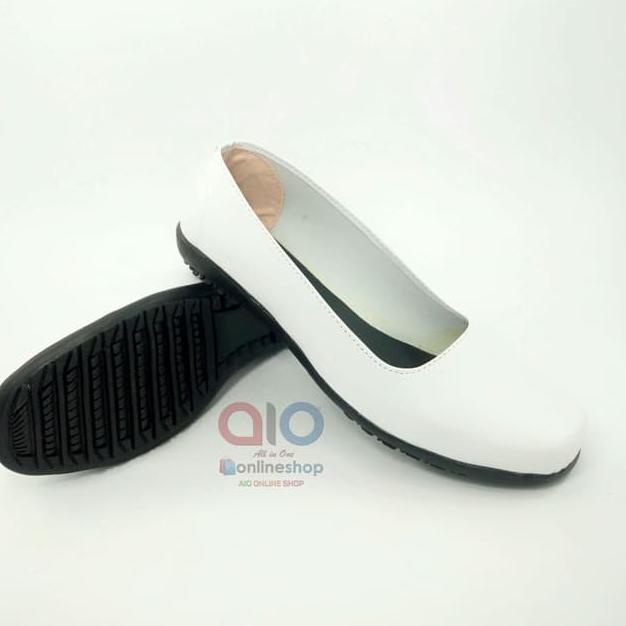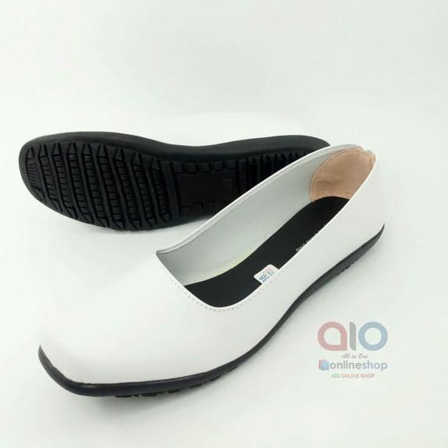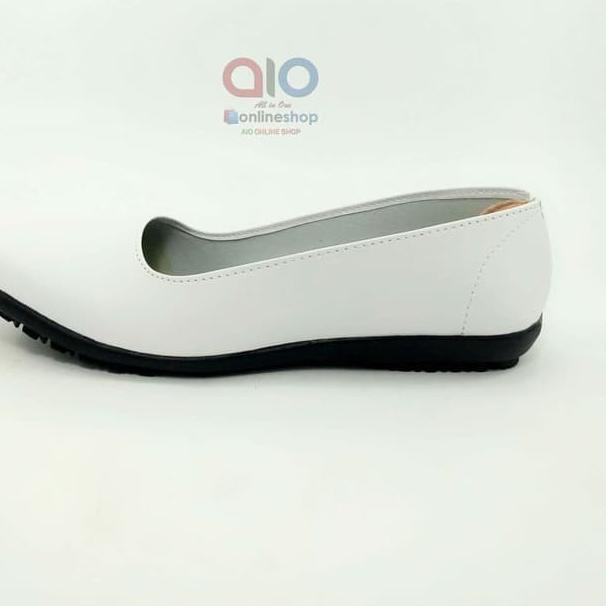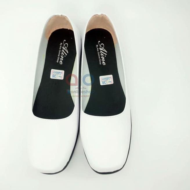 Terbaru dan terlaris Aline Sepatu Pantofel Wanita Flat Putih Polos Formal Kerja Bidan Perawat Dokter AW18 !