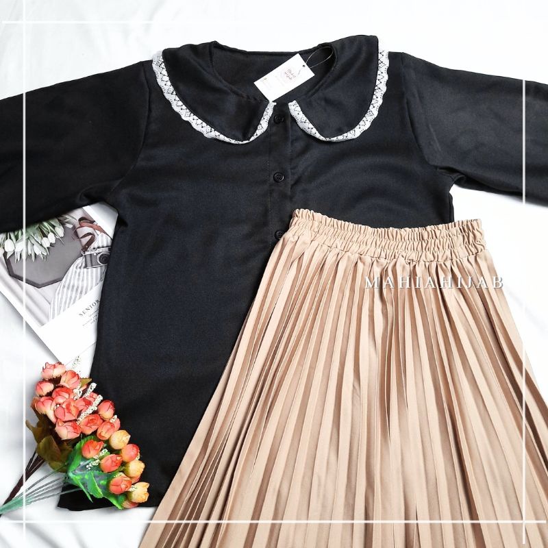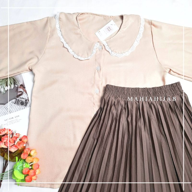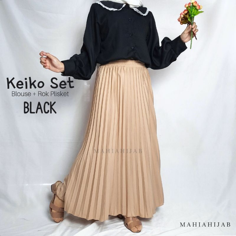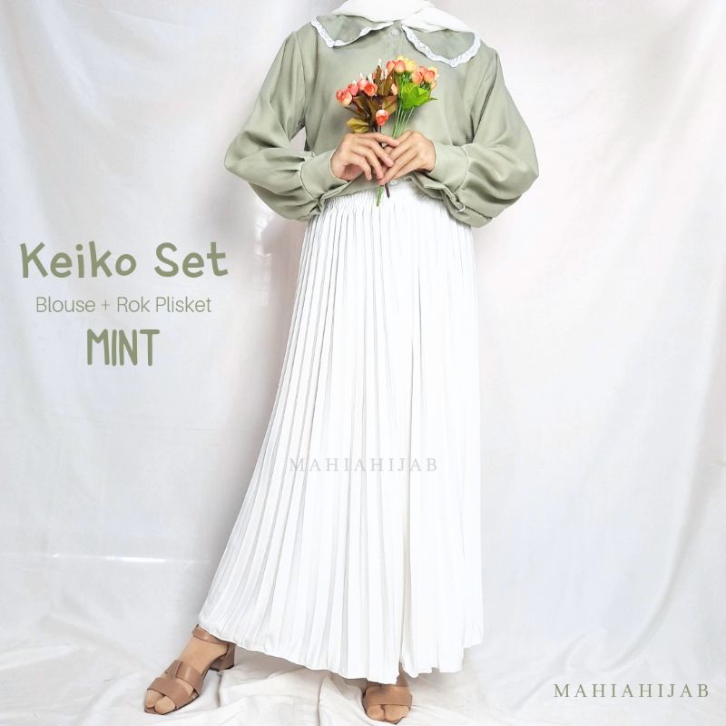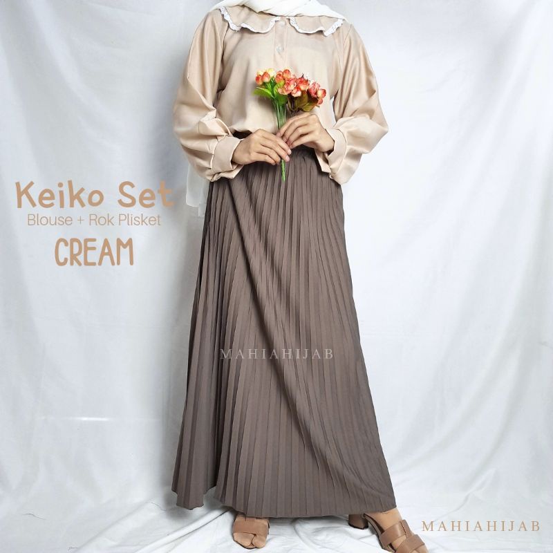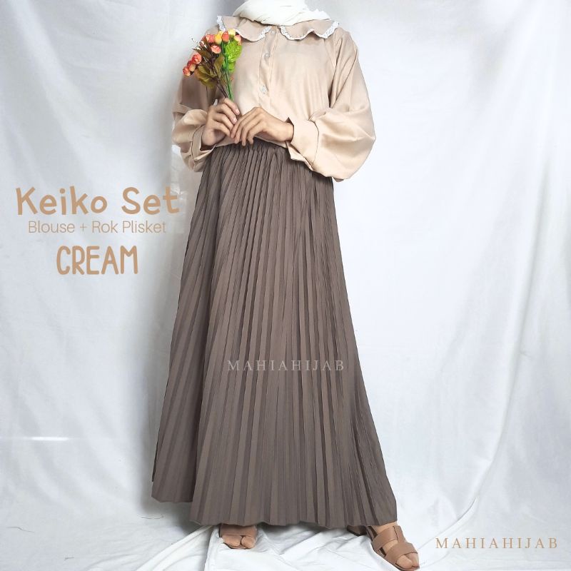 Keiko Set Blouse + Rok plisket KOREAN STYLE , outfit hijab , SETELAN LENGKAP