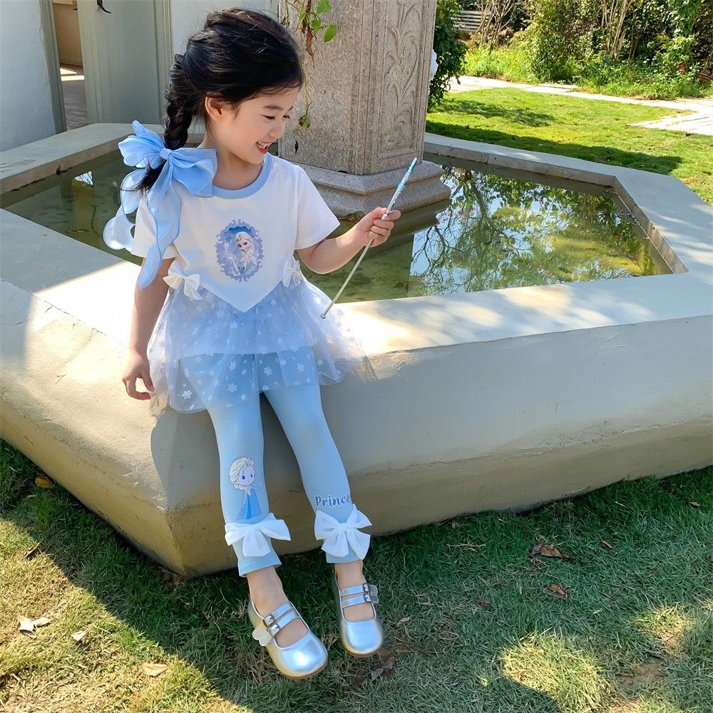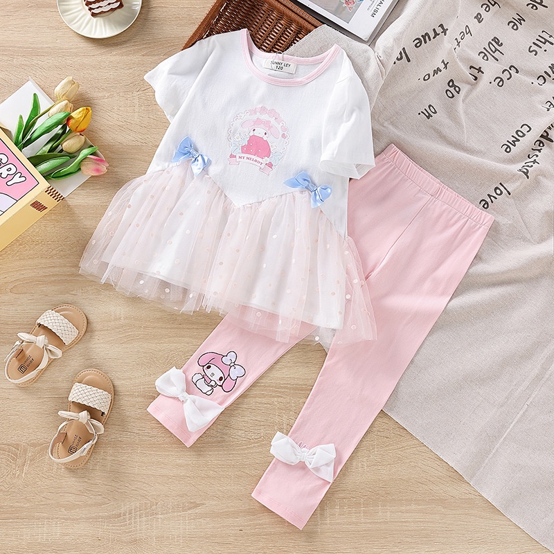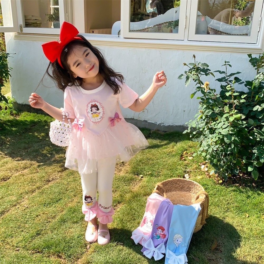 [princesscoco] 1-9 Tahun Setelan Princess Tile Pita Lengan Pendek Poliester Polos Baju Anak Perempuan Nyaman Lembut Kids Parsel
