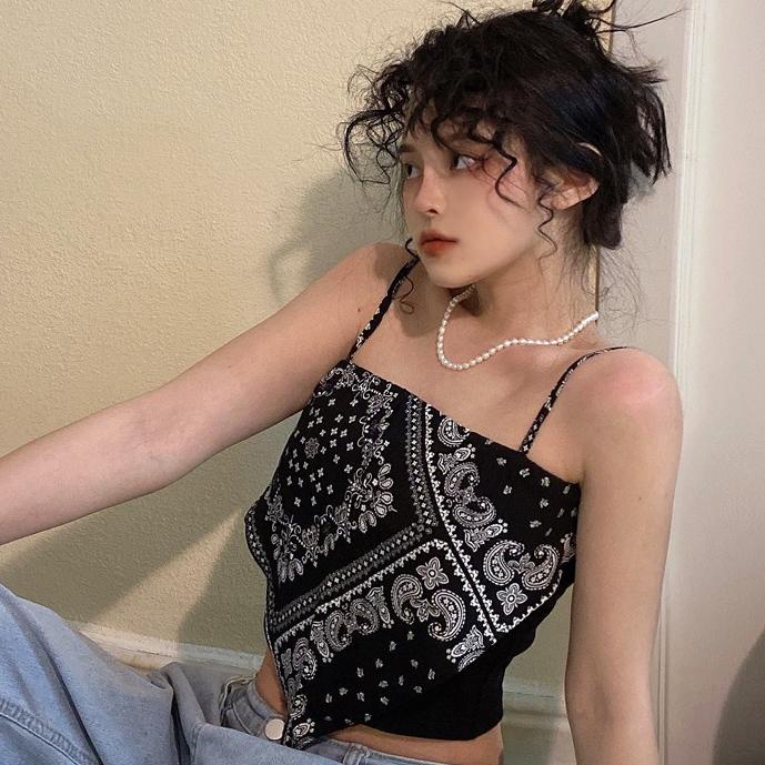 COD Pinky Tank Top model Crop Top Motif Hailey Scarf Wanita Import 1055 ??