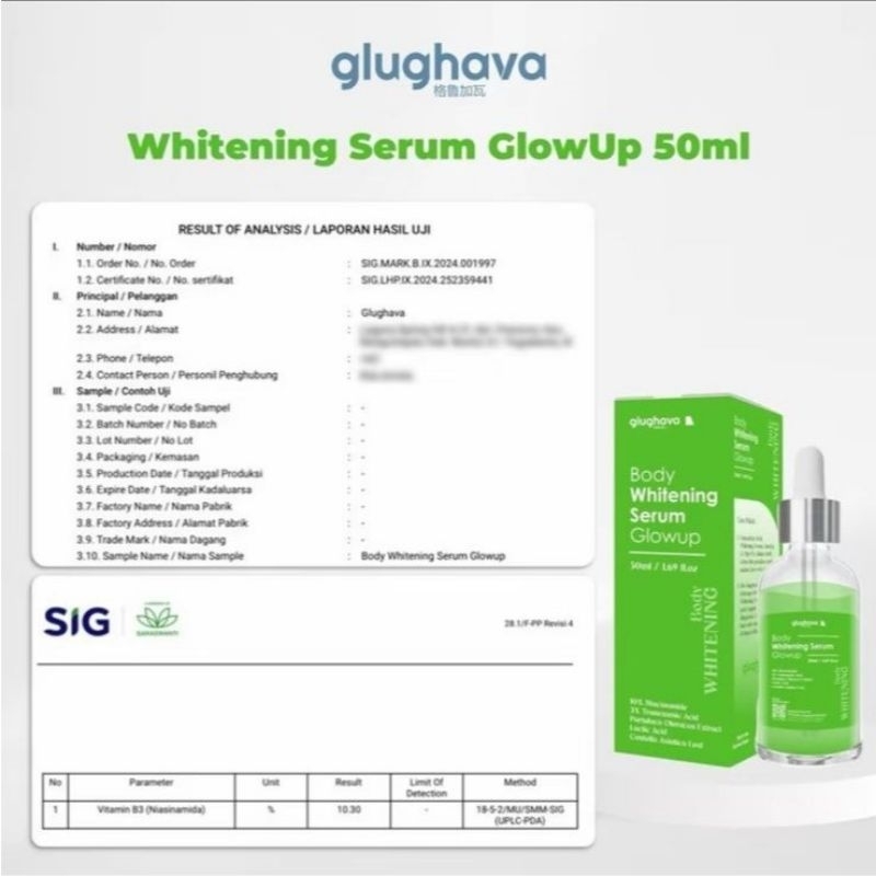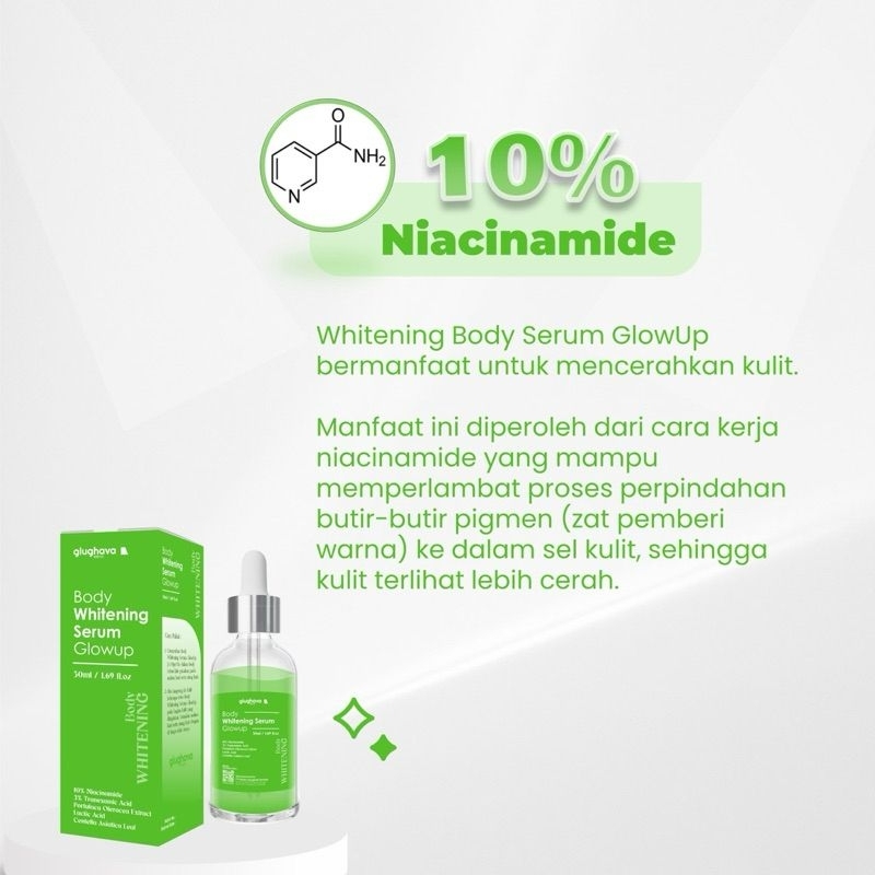 GLUGHAVA Body Whitening Serum 10% Niacinamade • Biang Serum Hijau