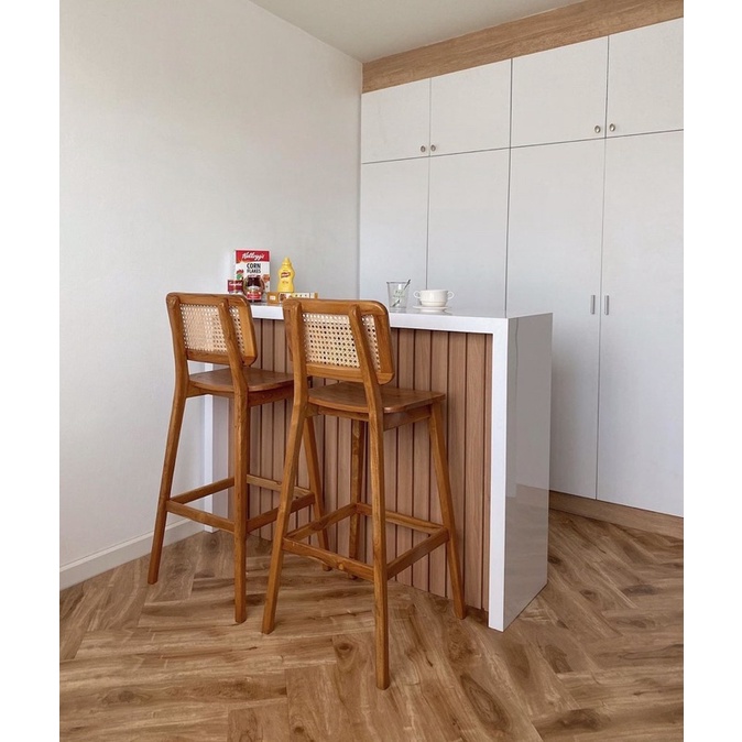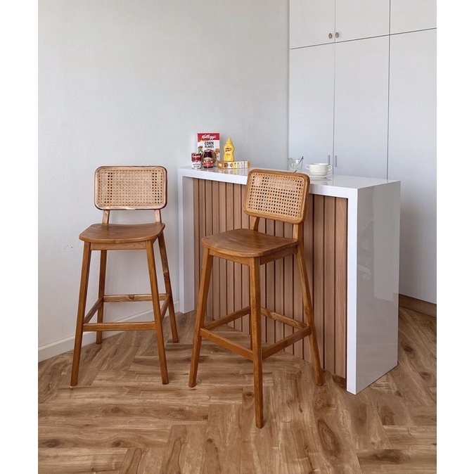 KURSI BAR / BAR STOOL / KURSI ICELAND MINIMALIS MATERIAL KAYU JATI KOMBINASI ROTAN