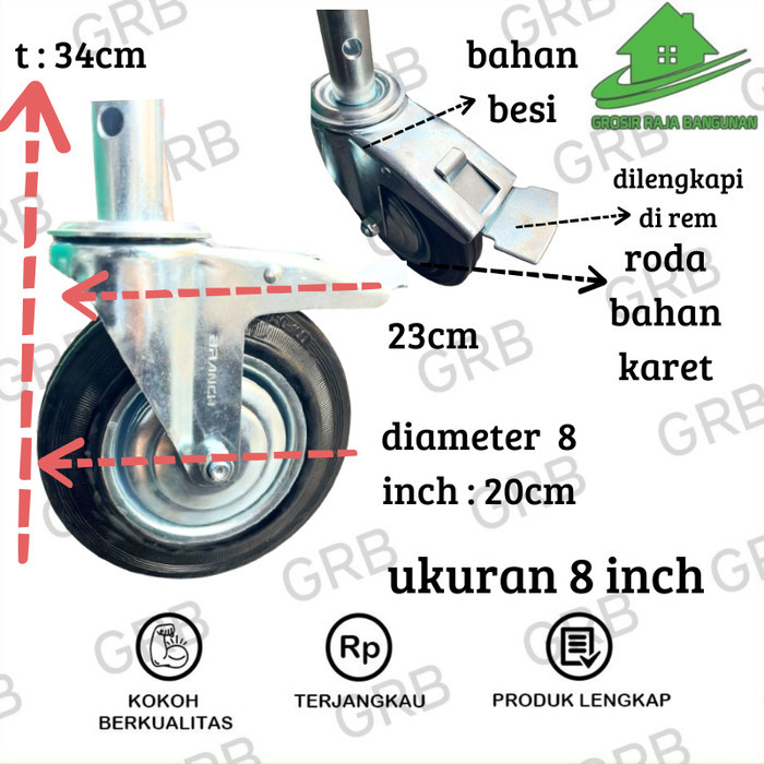 Roda scaffolding /roda steger (AdaRem)/Roda Kastor Karet Hitam TEBAL 6 In 8 In Troli pvc 1Set(4 pcs)