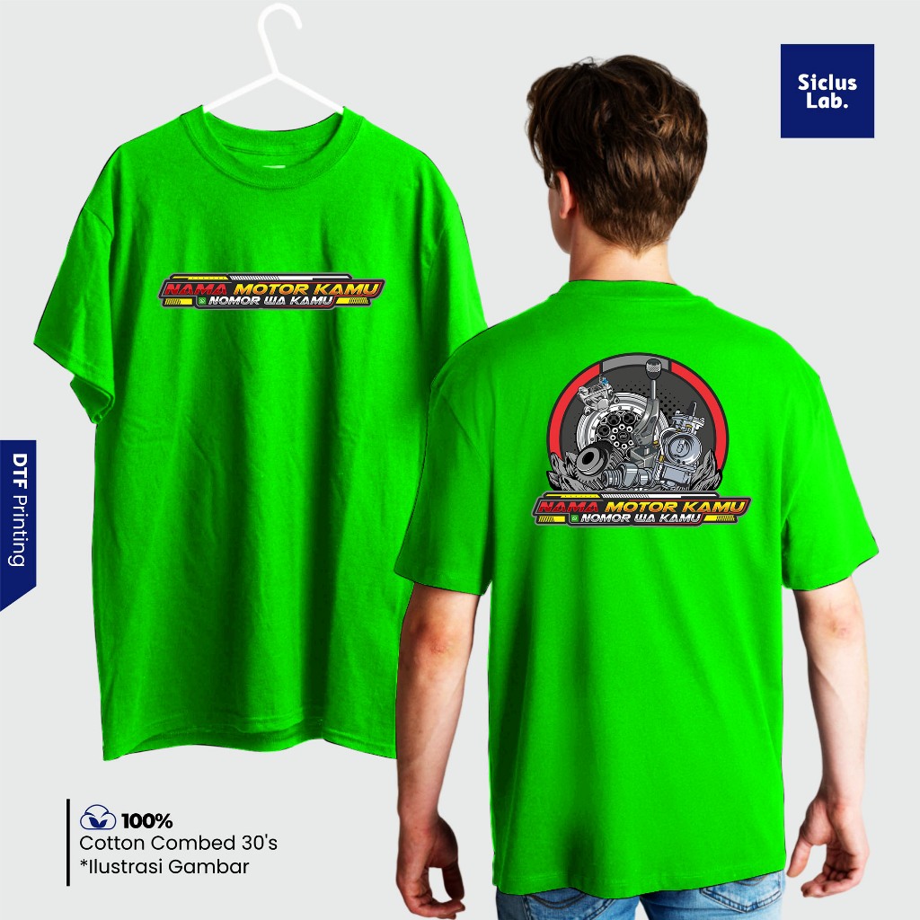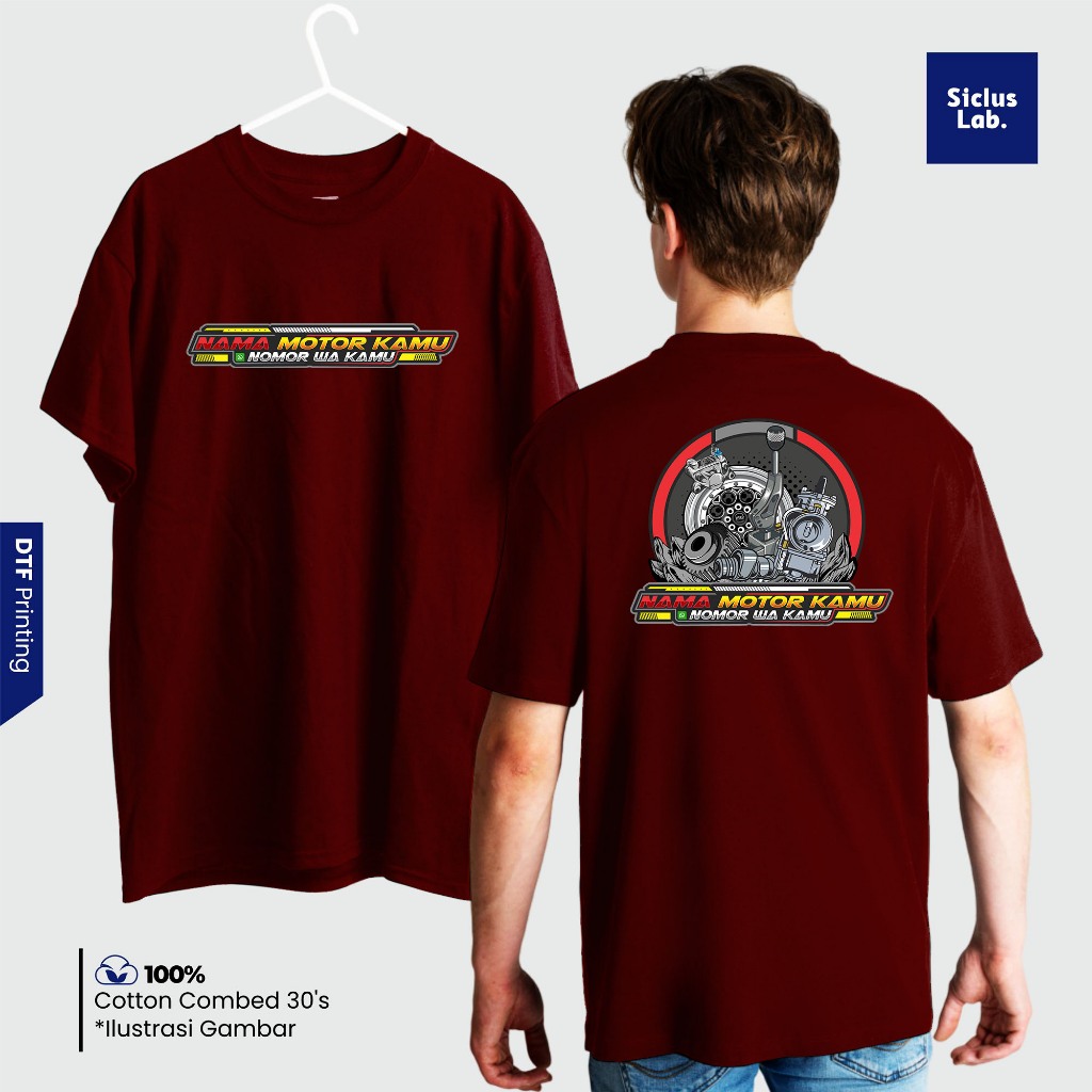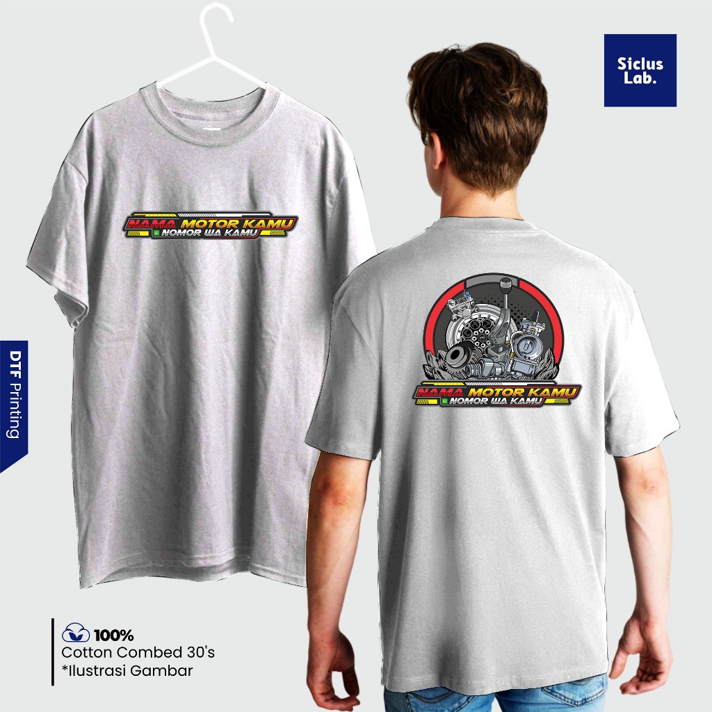 Kaos Custom Nama Motor & Nomor WA - Baju Request Satuan Desain Racing - Combed 30s