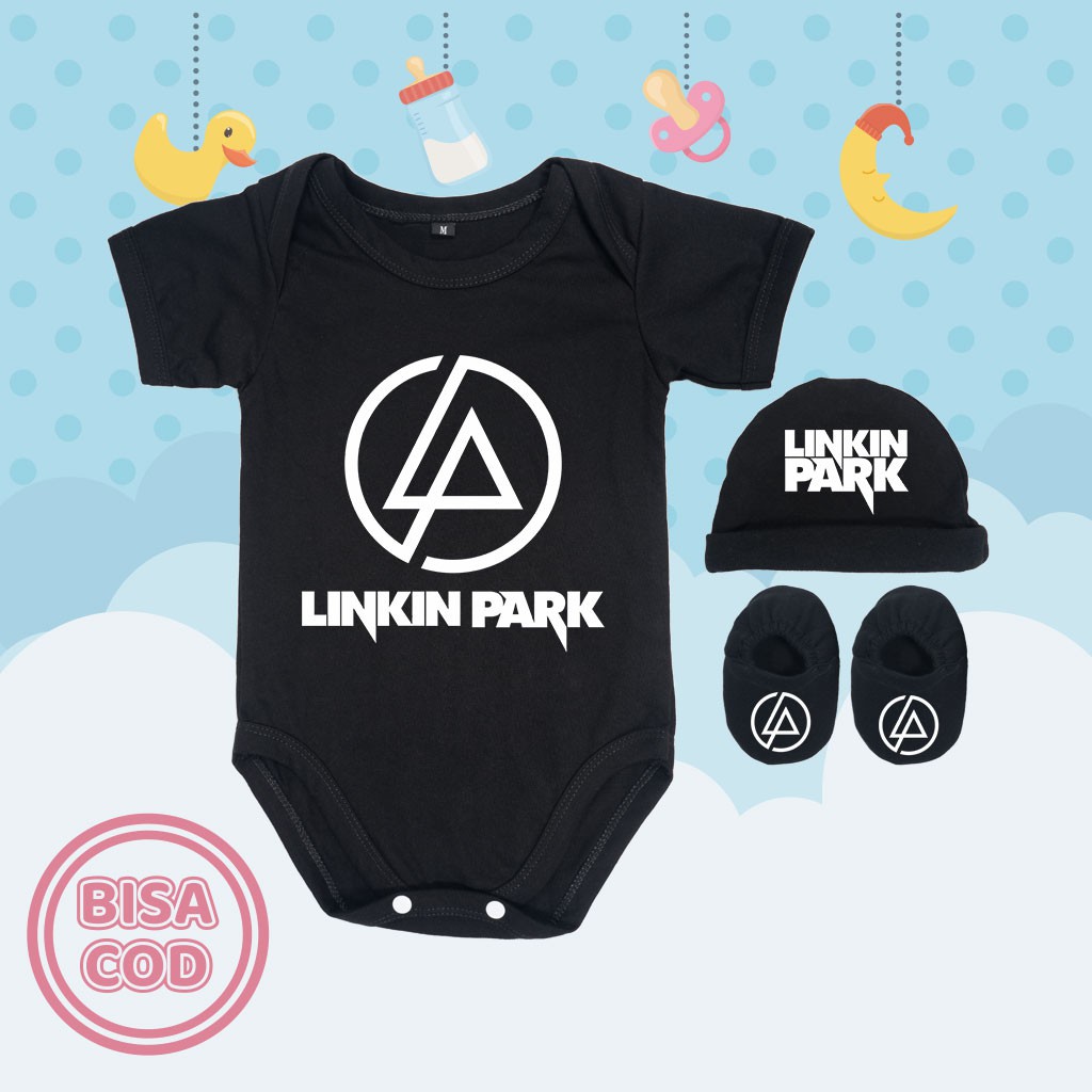 Baju Kodok Jumper Bayi Set Sepatu dan Topi Band Musik Rock Nu Metal Linkin Park