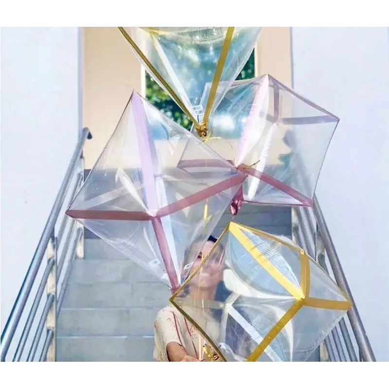 BALON PLASTIK TRANSPARAN KUBUS PIRAMIDA 4D