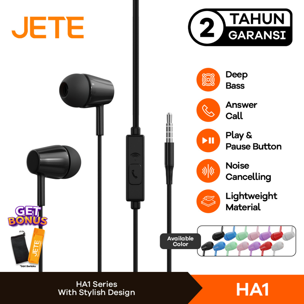 Headset Earphone Jack 3,5mm JETE HA1 with Microphone - Garansi 2 Tahun