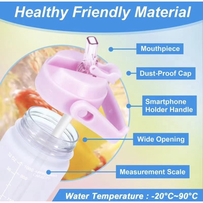READY QuiFit type B - Botol Minum Penanda Waktu - Botol Motivasi -Tumblr Botol Minum