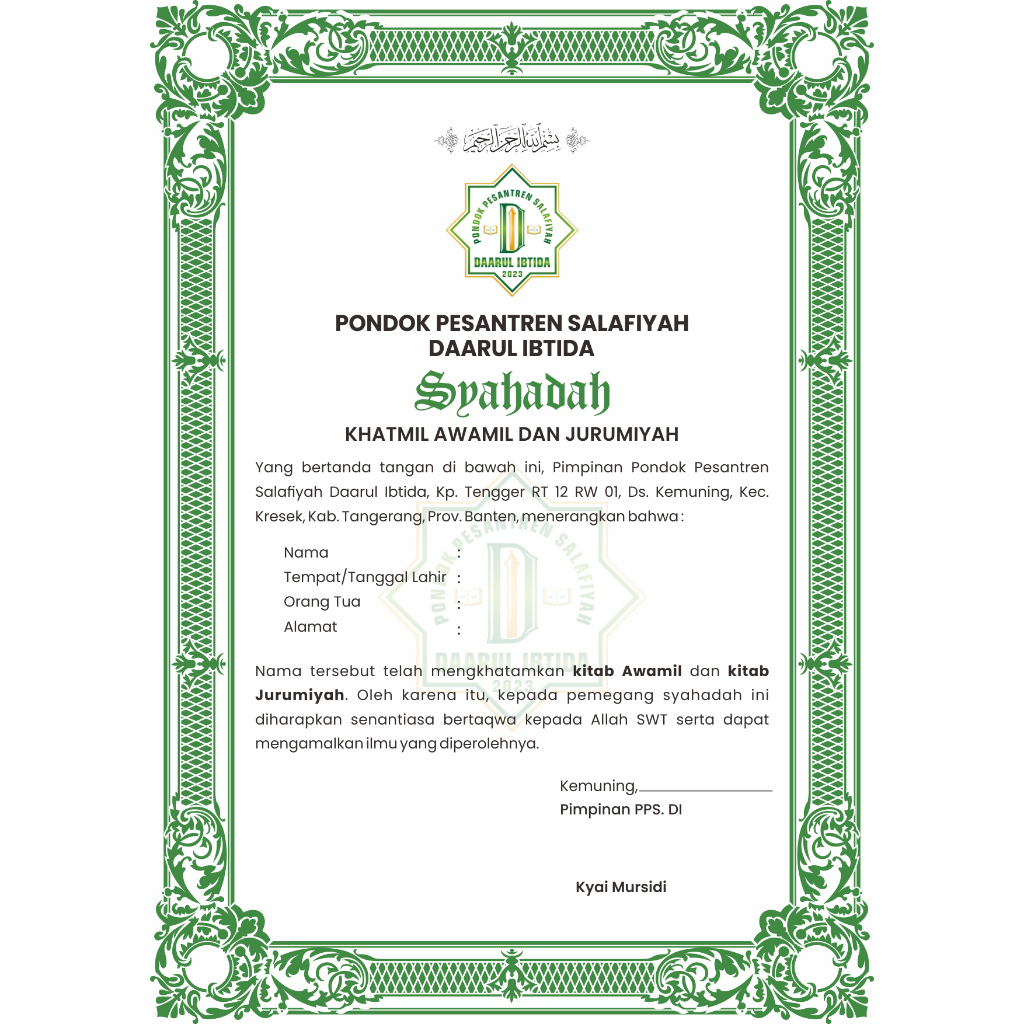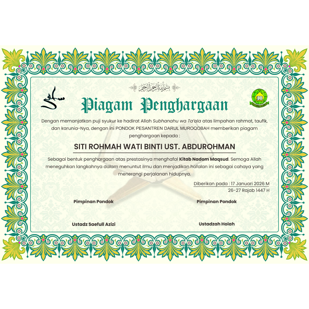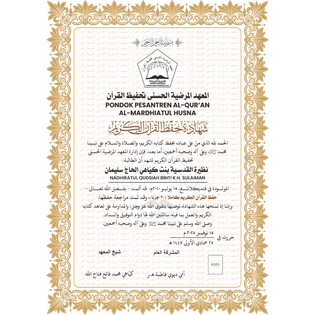 Cetak Syahadah Sertifikat Piagam Tahfizh Khatam Al Quran A4