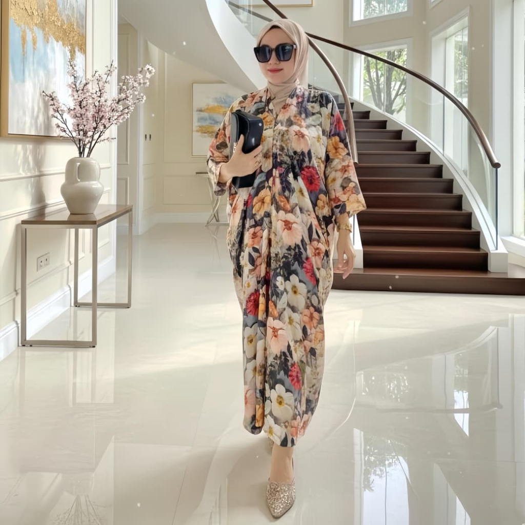 Kaftan Hawa Rayon Jumbo Premium Terbaru LD 140 Fashion Muslim Dress Bumil Busui Friendly Resleting Depan