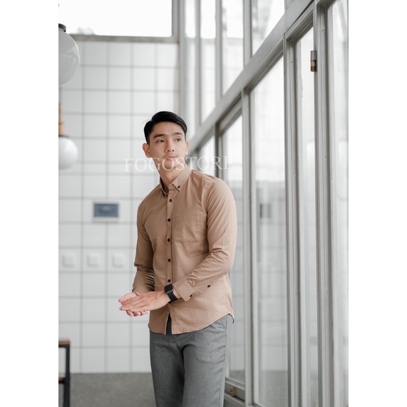 kemeja cowok polos lengan panjang hem pria kantor hitam navy putih maron