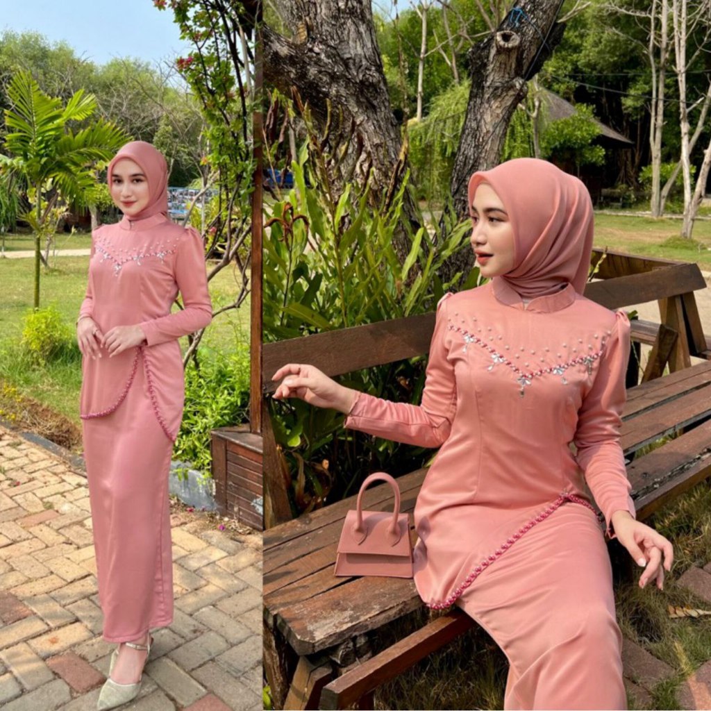 Oneset Baju Kurung Melayu Malaysia Terbaru Baju Kondangan Seragam Bridesmaid Baju Wisuda full payet