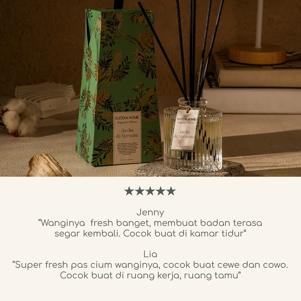 Euodia Home Jardin De Verveine Fragrance Diffuser 100 ml - Pengharum ruangan aromaterapi / reed diffuser / aromatherapy