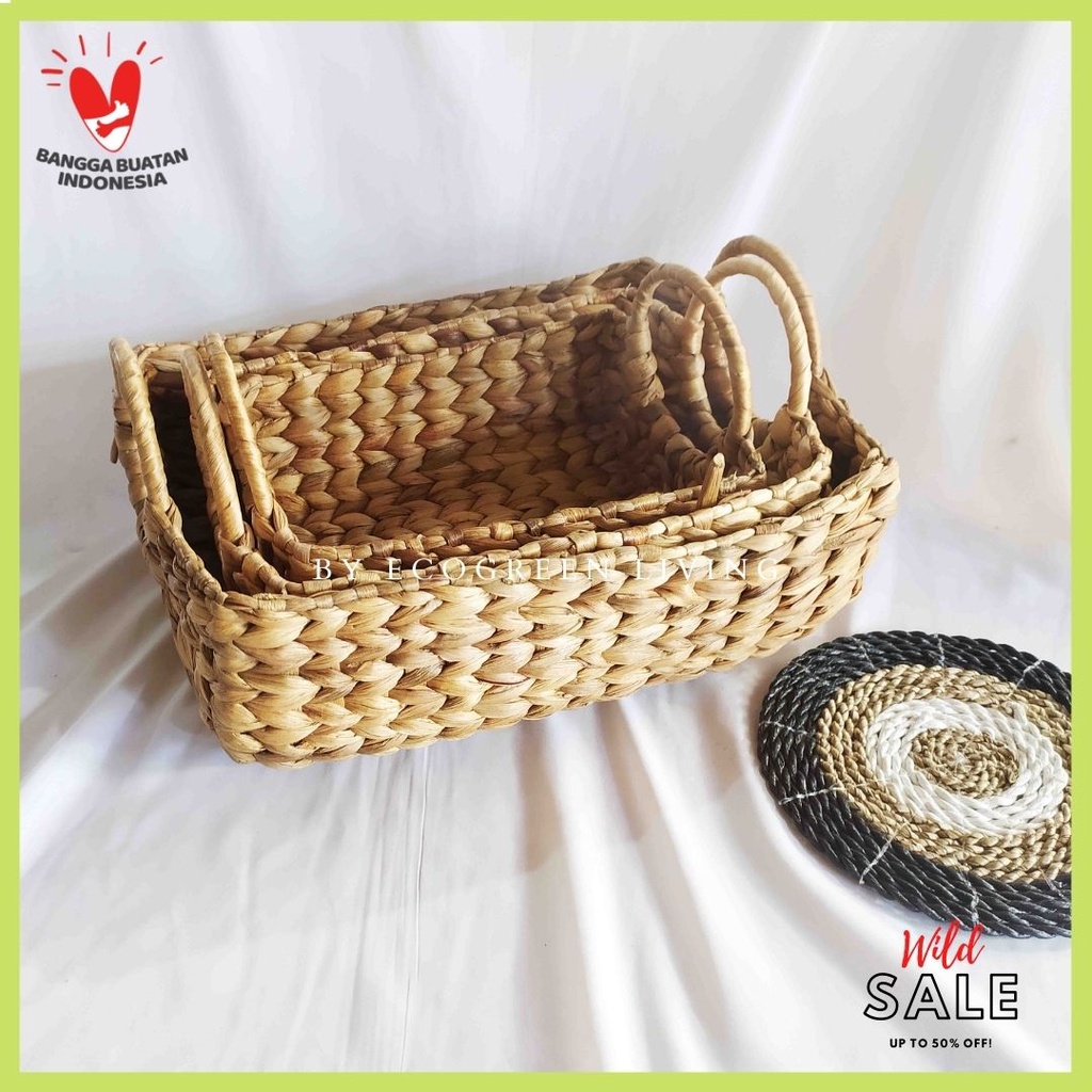Tray Handle Rotan//Keranjang Eceng Gondok Multifungsi Murah