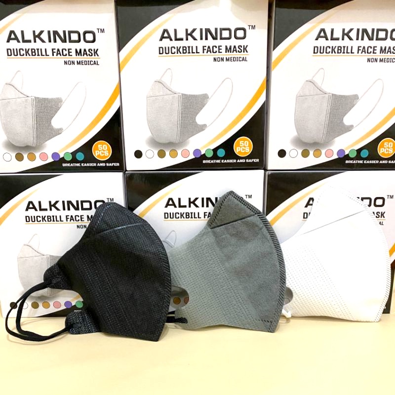 Masker Duckbill Earloop 3Ply Facemask Putih Hitam Isi 50Pcs - Hokee Store