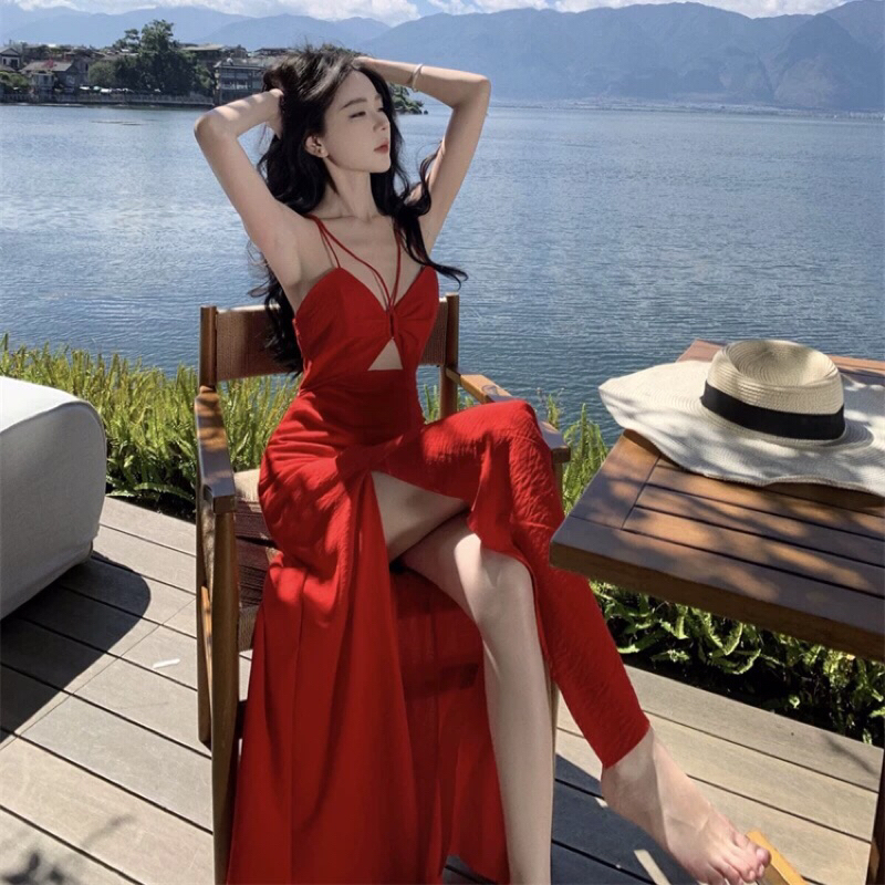 Party Dress merah Beachwear / red dress wanita / Baju pantai D0358