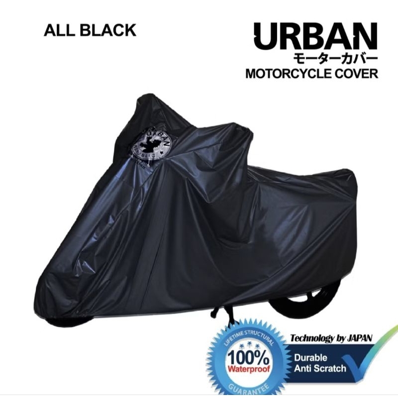 Sarung Cover Motor waterproof tebal Merk Urban Full black