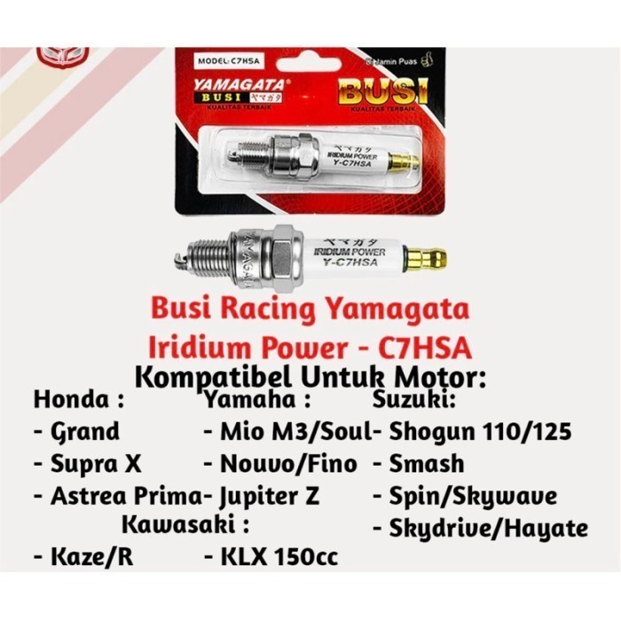 Busi racing Iridium Power Yamagata C7HSA Kepala Pendek Mio Series Fino Nouvo Jupiter Z Grand Supra Astrea Kaze Smash Shogun Spin Skywave Skydrive Hayate Kaze KLX Universal Motor Bebek Matic RDM