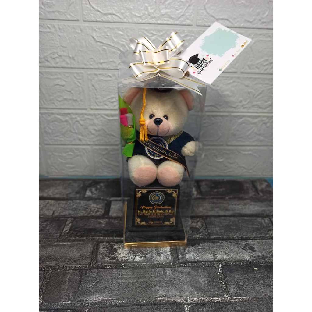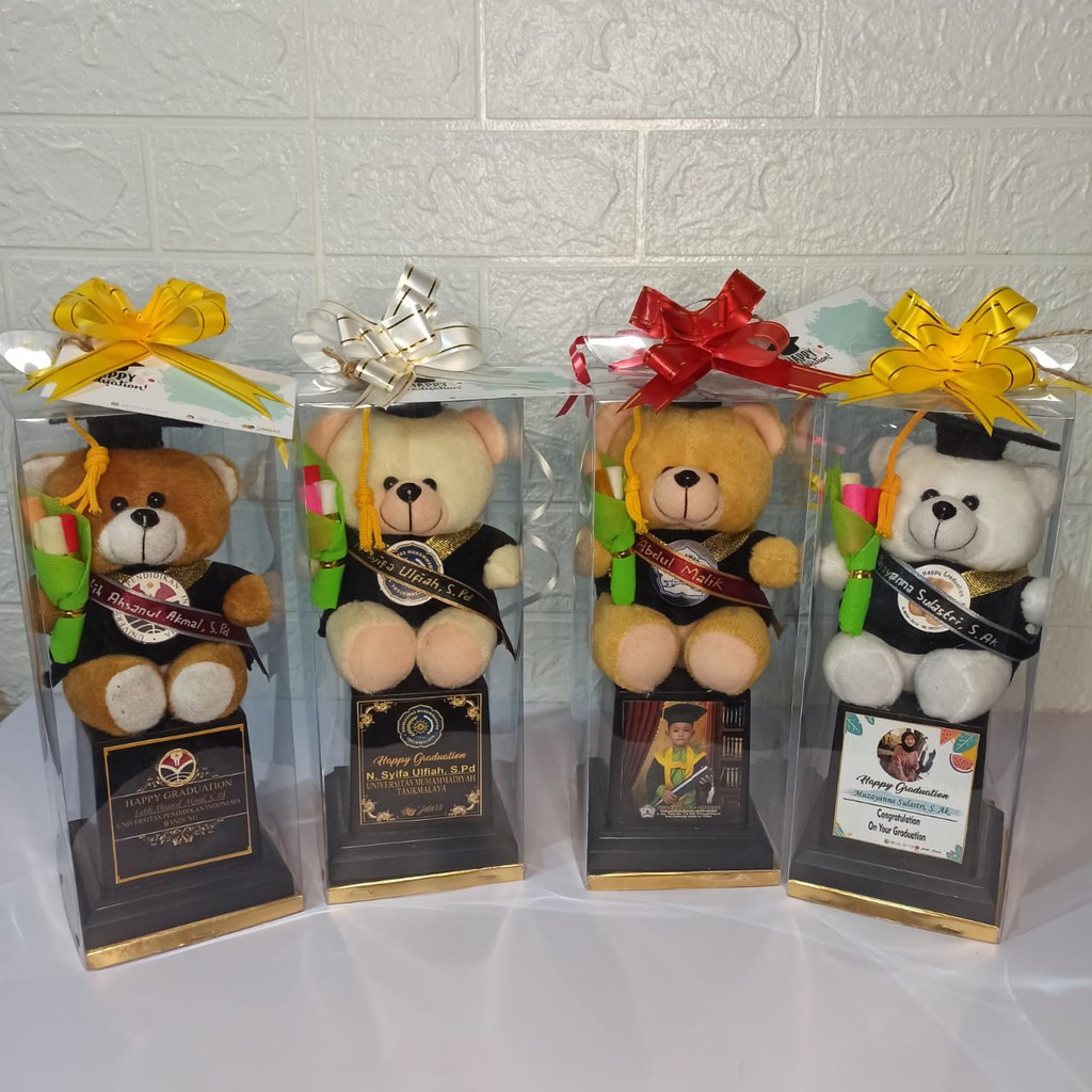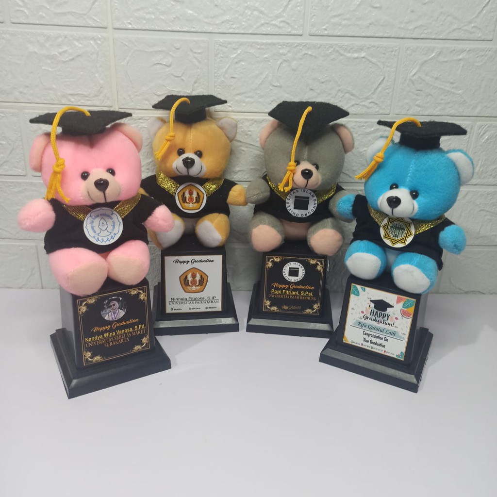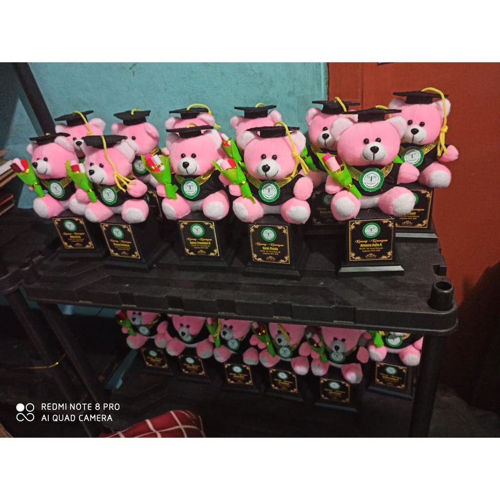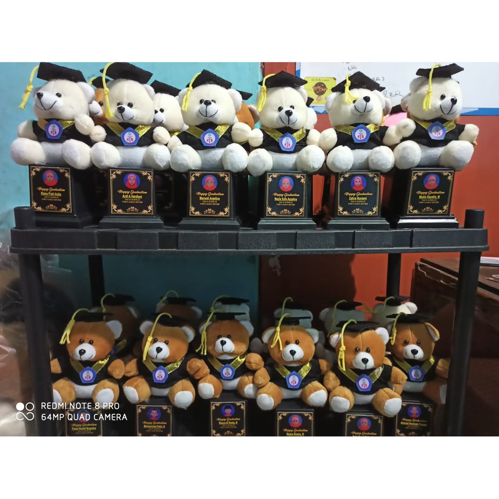 PIALA BONEKA WISUDA MIKA / TROPHY MIKA BONEKA / HADIAH WISUDA / FREE REQUEST NAMA FOTO DAN LOGO