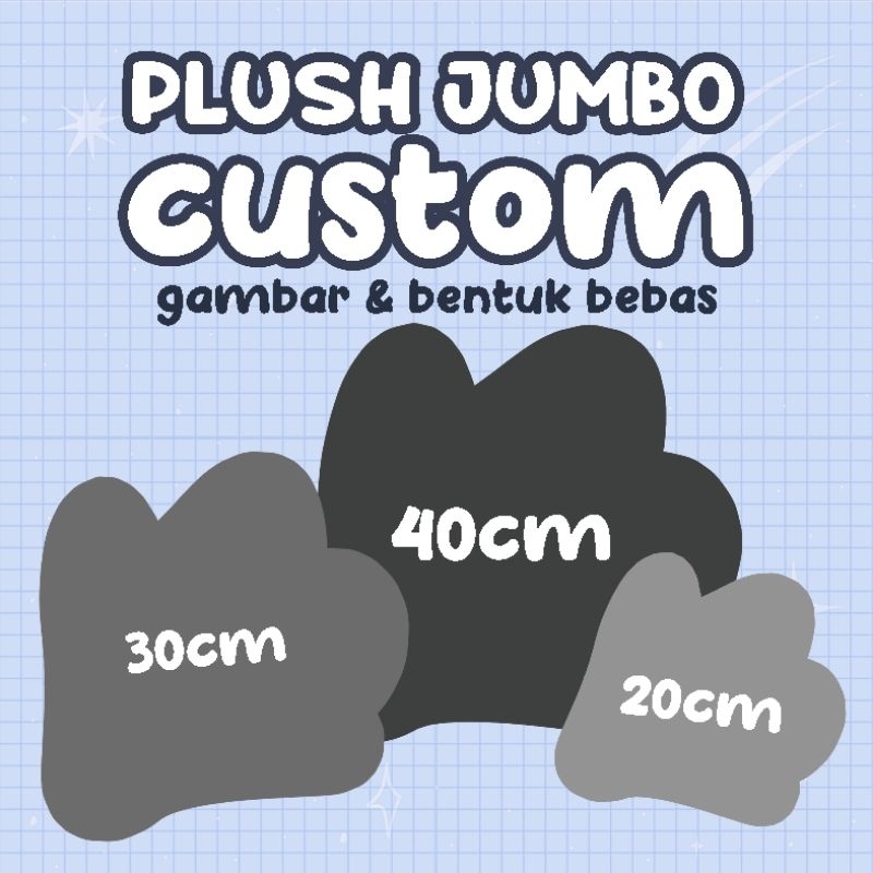 Plush/Boneka CUSTOM bentuk bebas cetak 2 sisi(20cm, 30cm, 40cm)