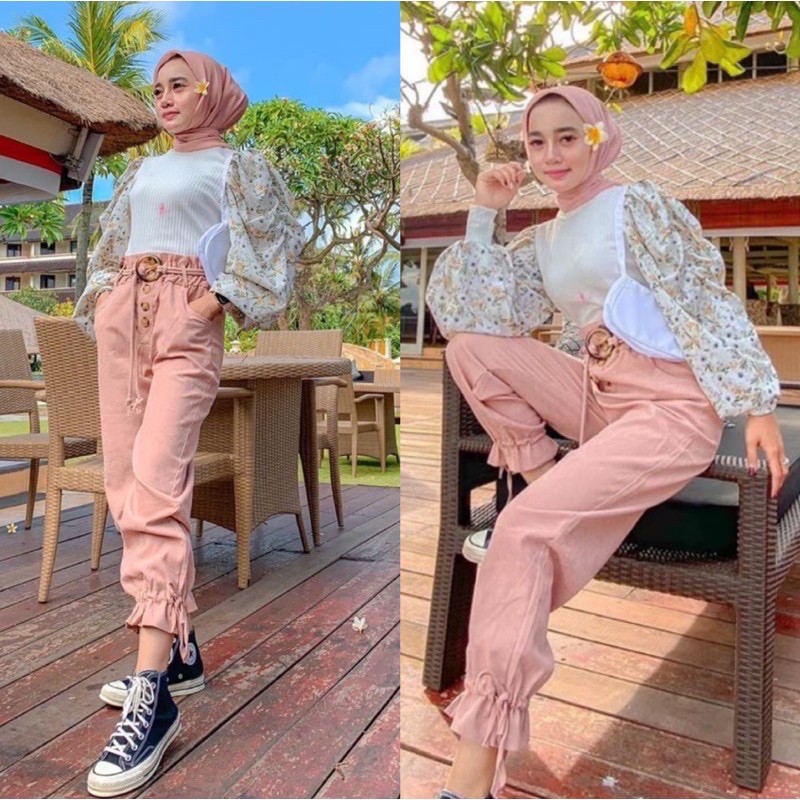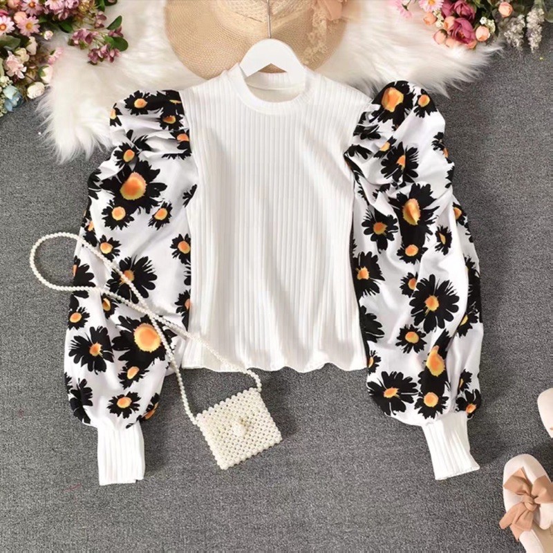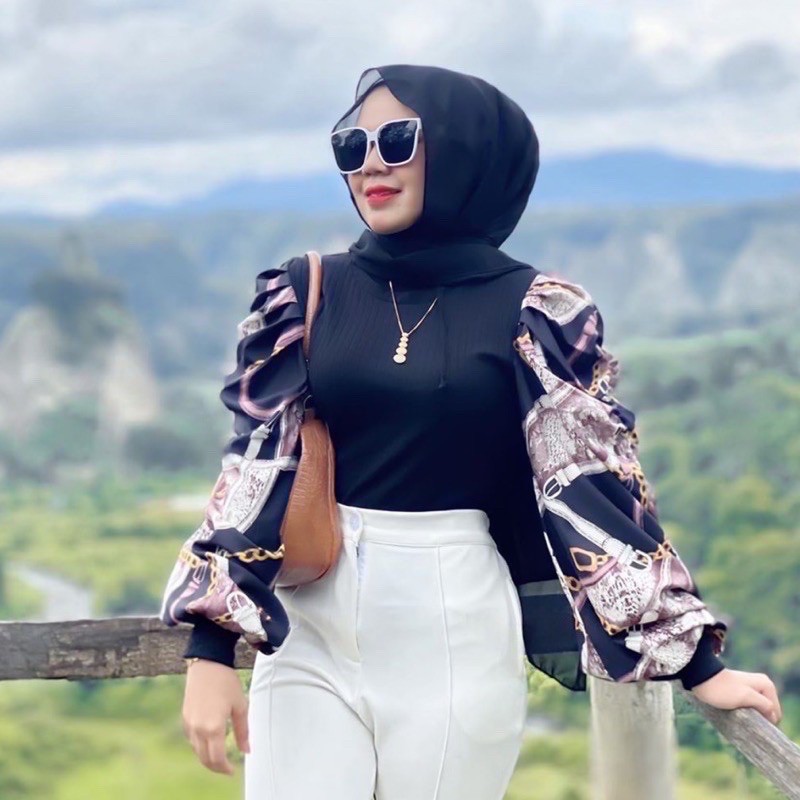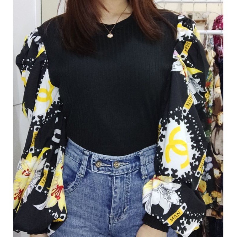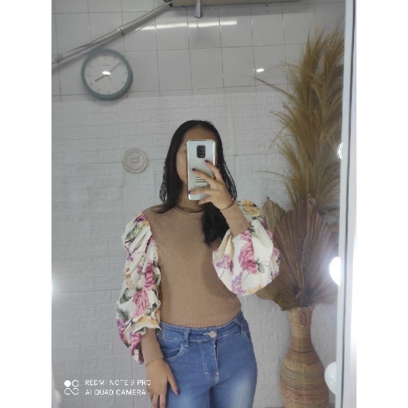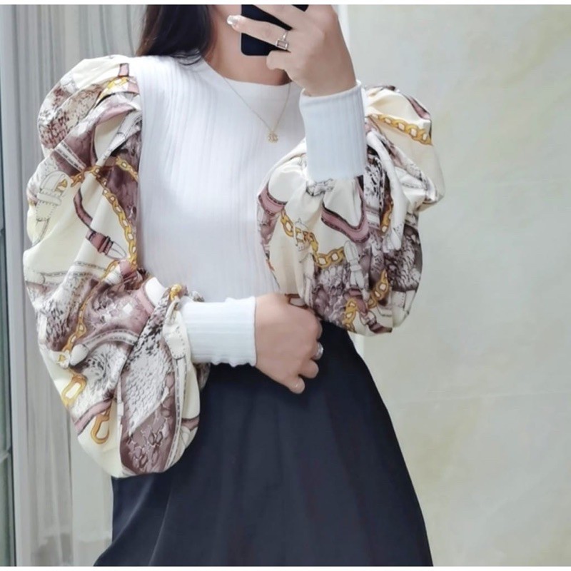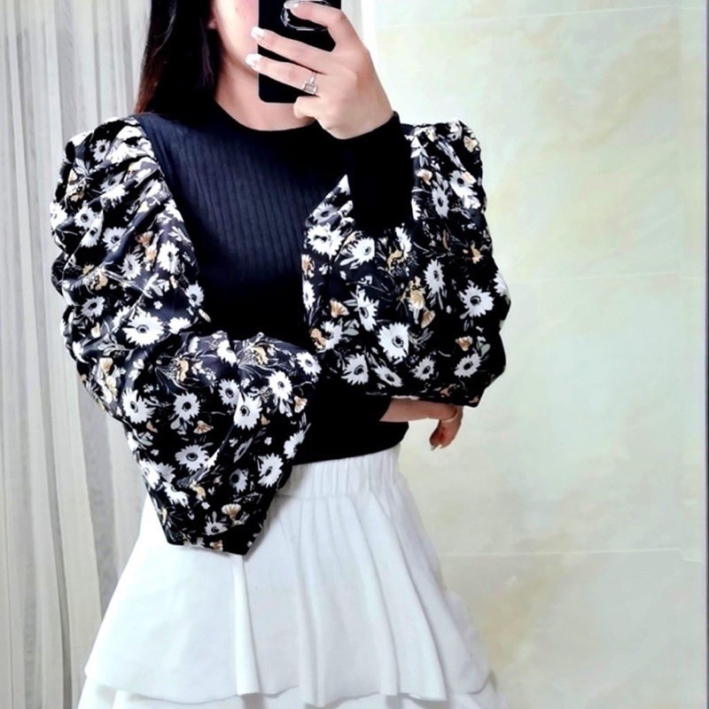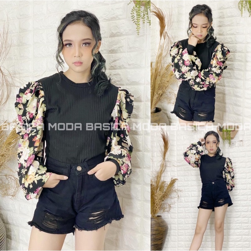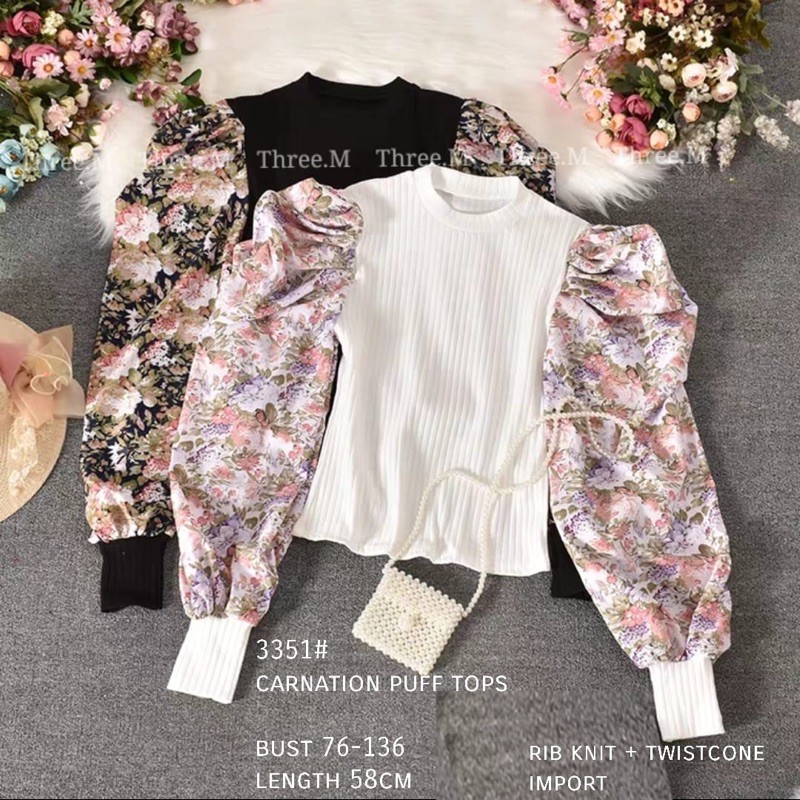 [Basica Moda] 3351 Atasan Blouse Wanita Carnation Puff Rajut