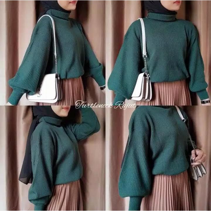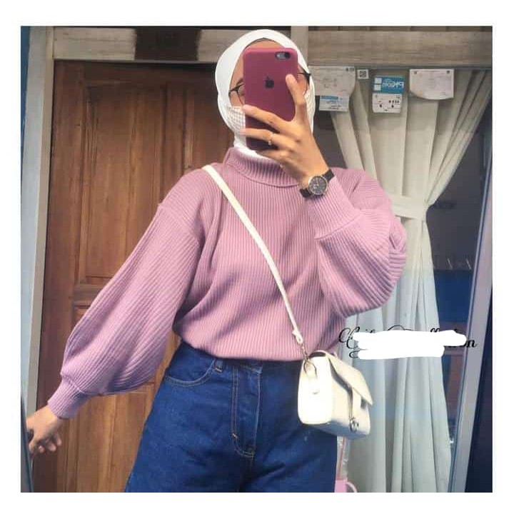 SWEATER WANITA BASIC RAJUT MODEL TURTLENECK (KERAH TINGGI) BAJU ATASAN KOREAN STYLE LENGAN PANJANG KEKINIAN