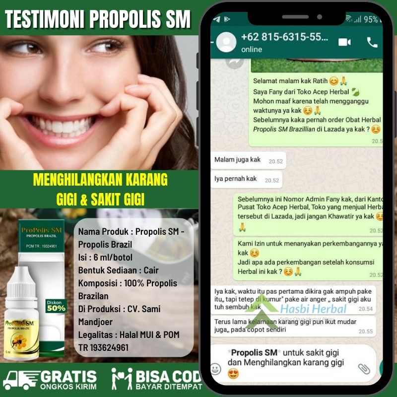 Obat Tetes Perontok Karang Gigi 100% Alami, Penghilang Plak Kuning di Gigi, Pembersih Gigi, Pemutih Gigi Alami, Penghilang Bau Mulut Akibat Karang Gigi Tebal, Obat Pengikis Karang Gigi Tebal, Penghancur Karang Gigi, Atasi Dengan Propolis SM Aman BPOM