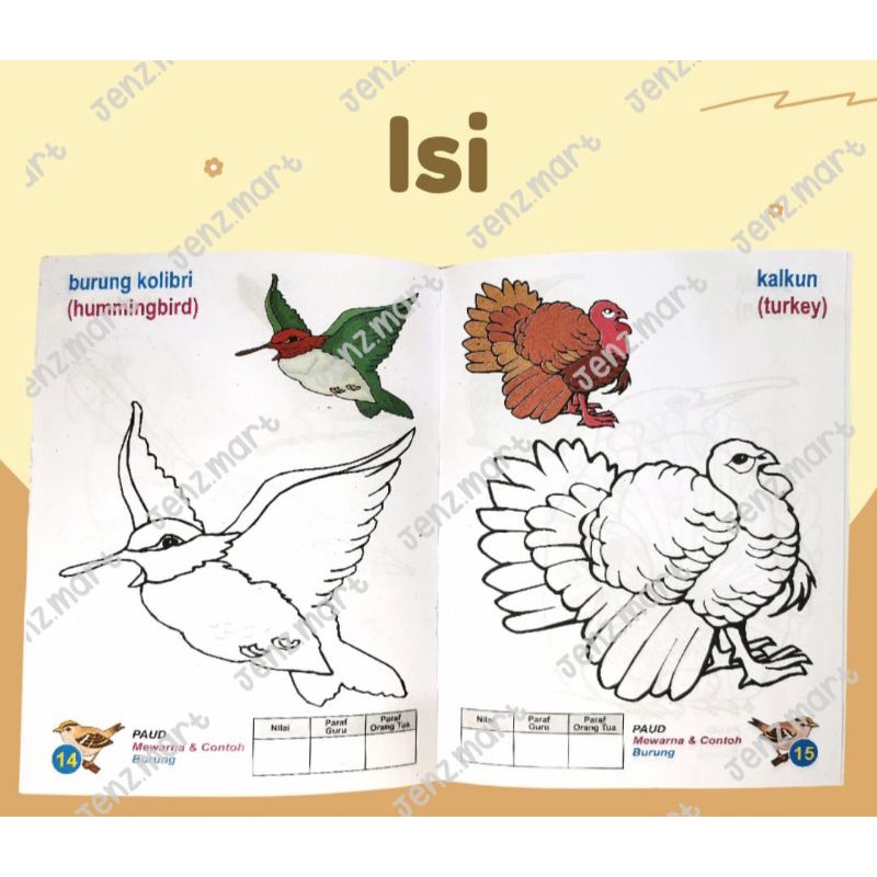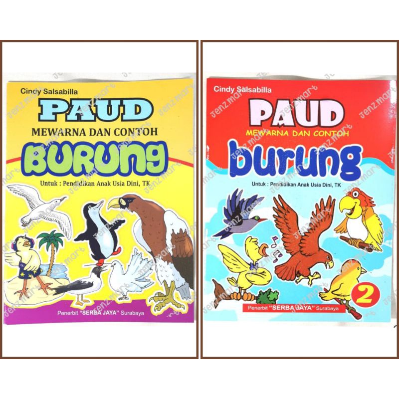 Buku Mewarna dan Contoh Burung Jilid 1 dan Jilid 2 untuk PAUD/TK.