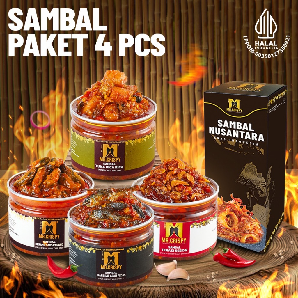 Paket Sambal Mr.Crispy/Paket Sambal 4 Pcs- Sambal Mix Varian Mr. Crispy – Paket Sambal Viral Pedas Gurih Praktis