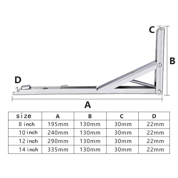 RBS - Bracket Engsel Siku Meja Lipat Dinding 8 10 12 14 16 18 20 inch Isi 2 pcs | Set Siku Meja Lipat Dinding FREE Sekrup | Bracket Engsel Meja Lipat Penyangga Rak Dinding