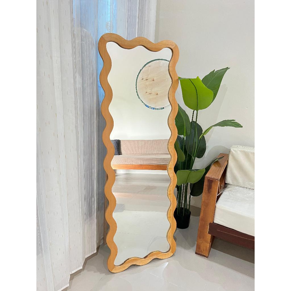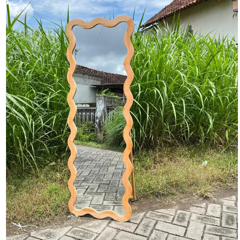 FREE PACKING KAYU Standing Mirror Frame Kayu Bentuk gelombang Cermin Rias Aesthetic Cermin Hias Cermin Kaca Full Body