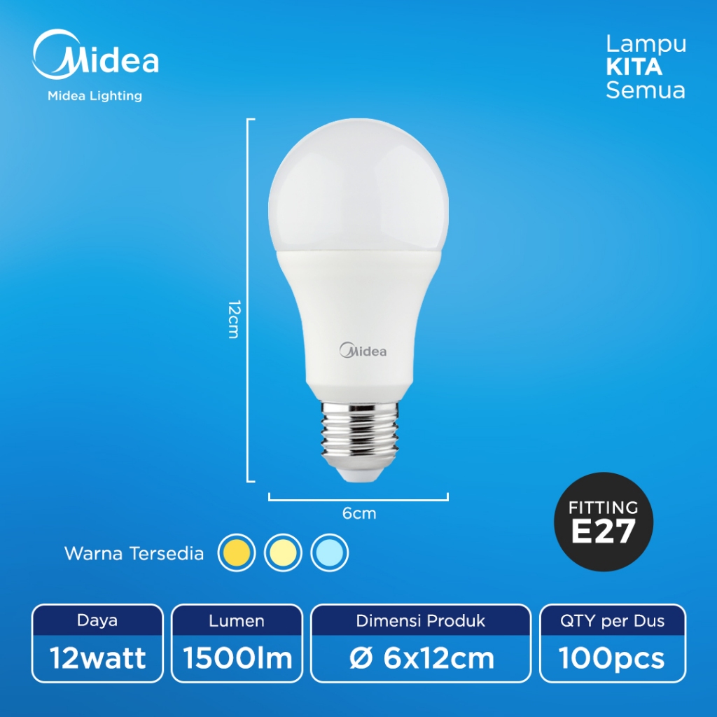 Midea Lighting - Lampu Bulb LED 12 Watt 4000K - Kuning Soft - Natural White
