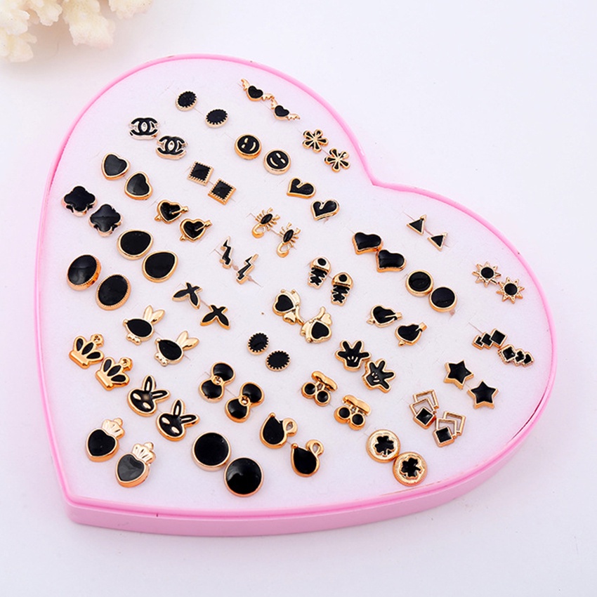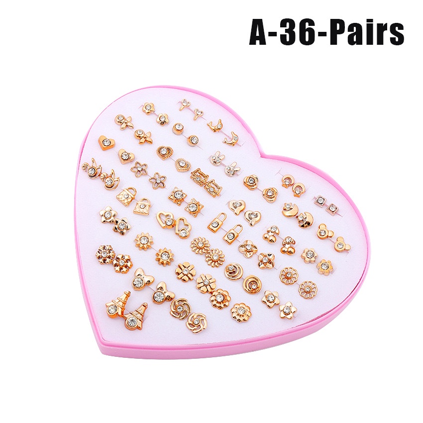 36Pasang/Set Anting Tusuk Bentuk Hati Bahan Plastik Warna Emas untuk Wanita
