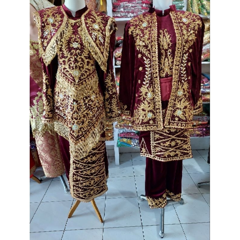 Baju Penganten Minang Maroon Kombinasi Gold
