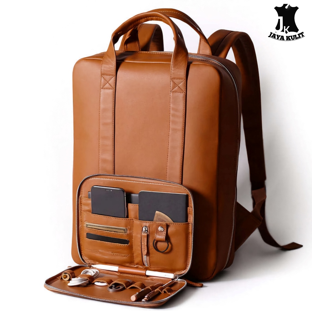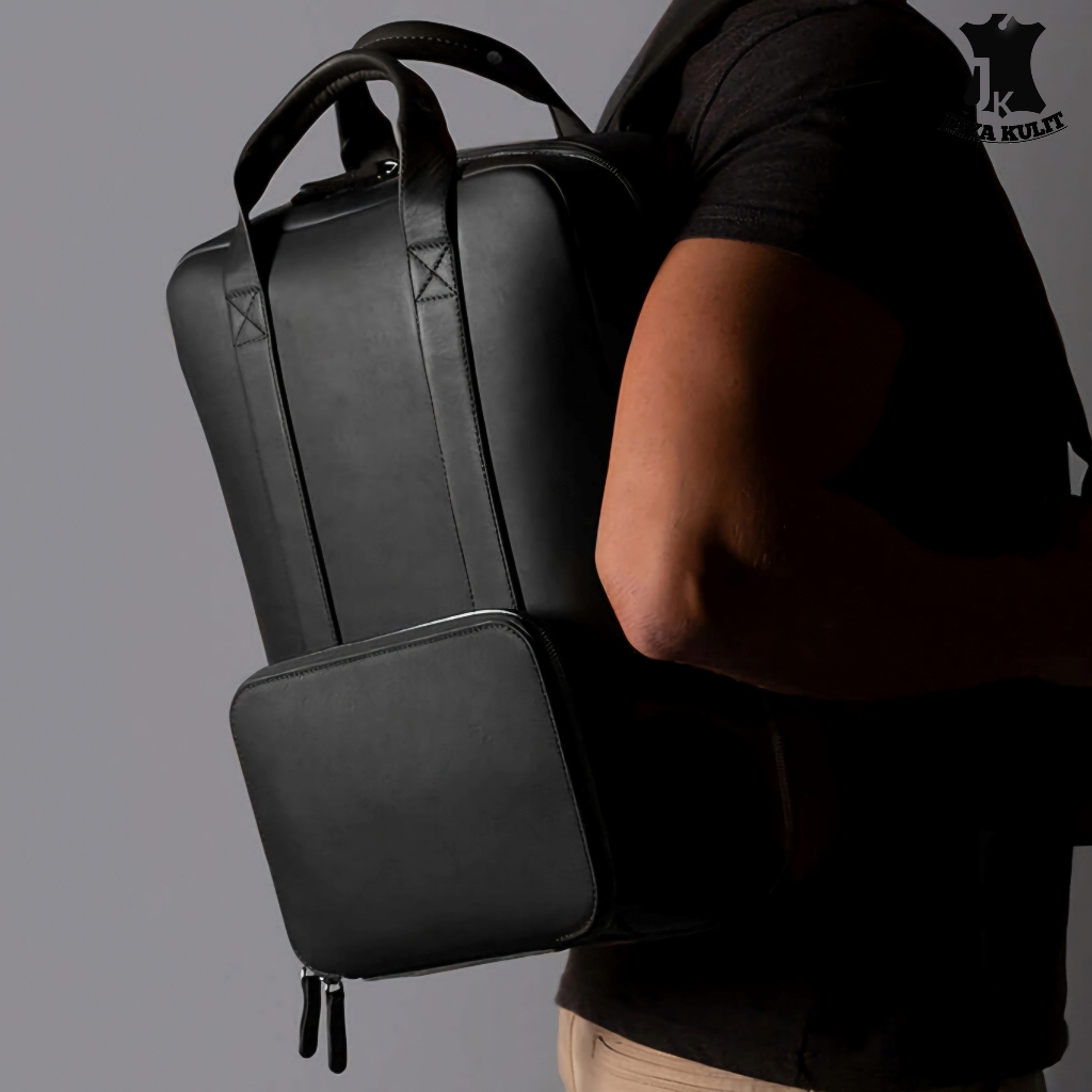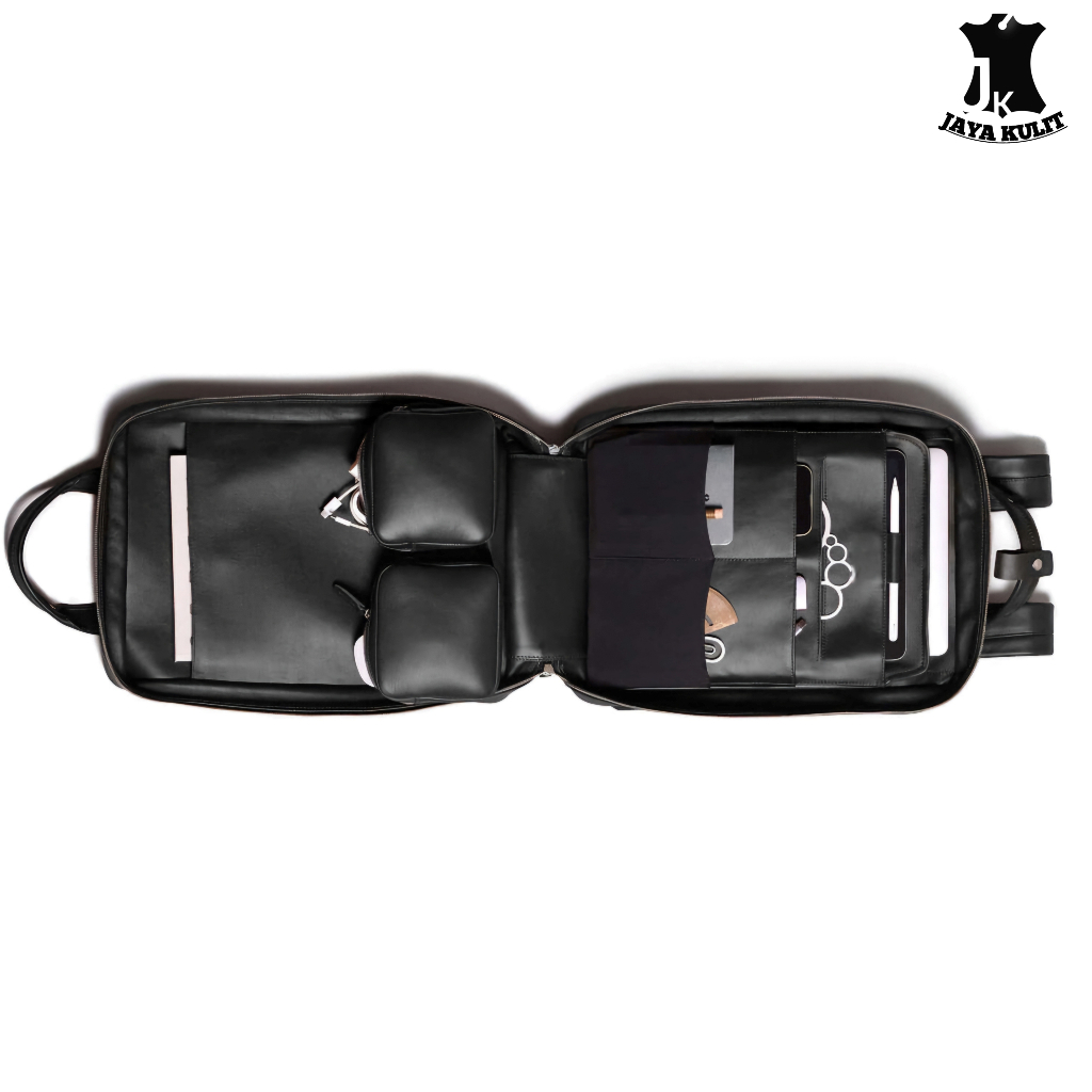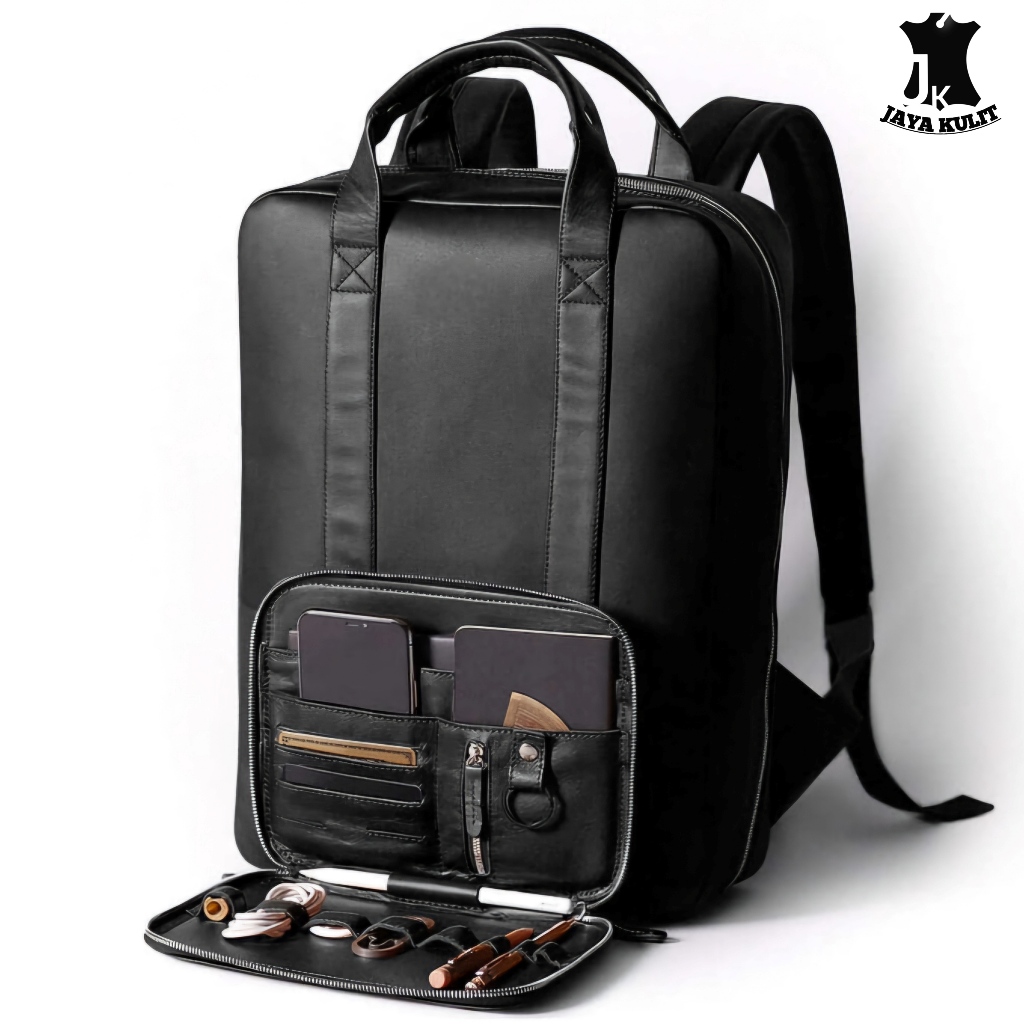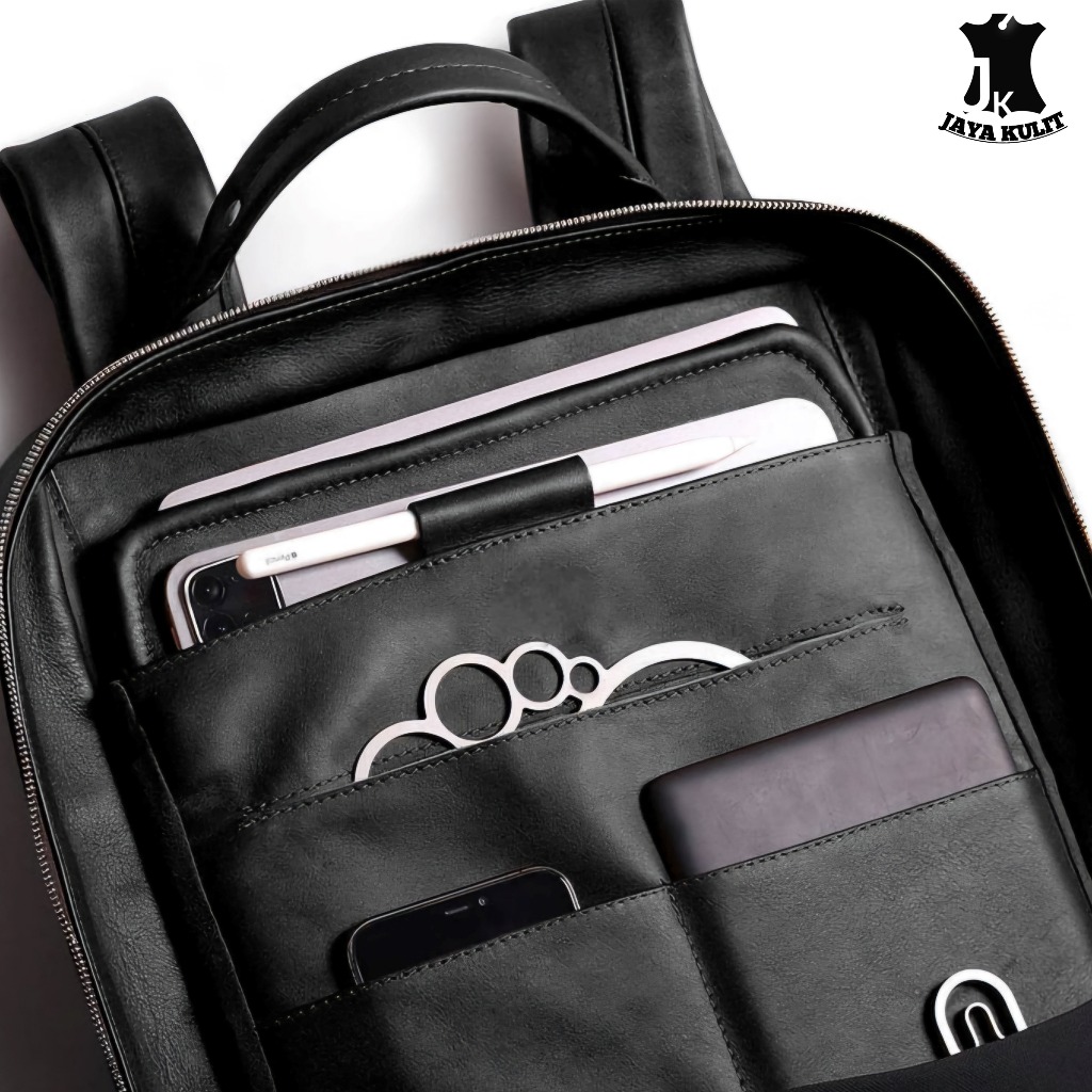 JAYA KULIT Tas Ransel Full Kulit Asli Dengan Multi Sisipan Premium Quality.JK.HRBR Hitam