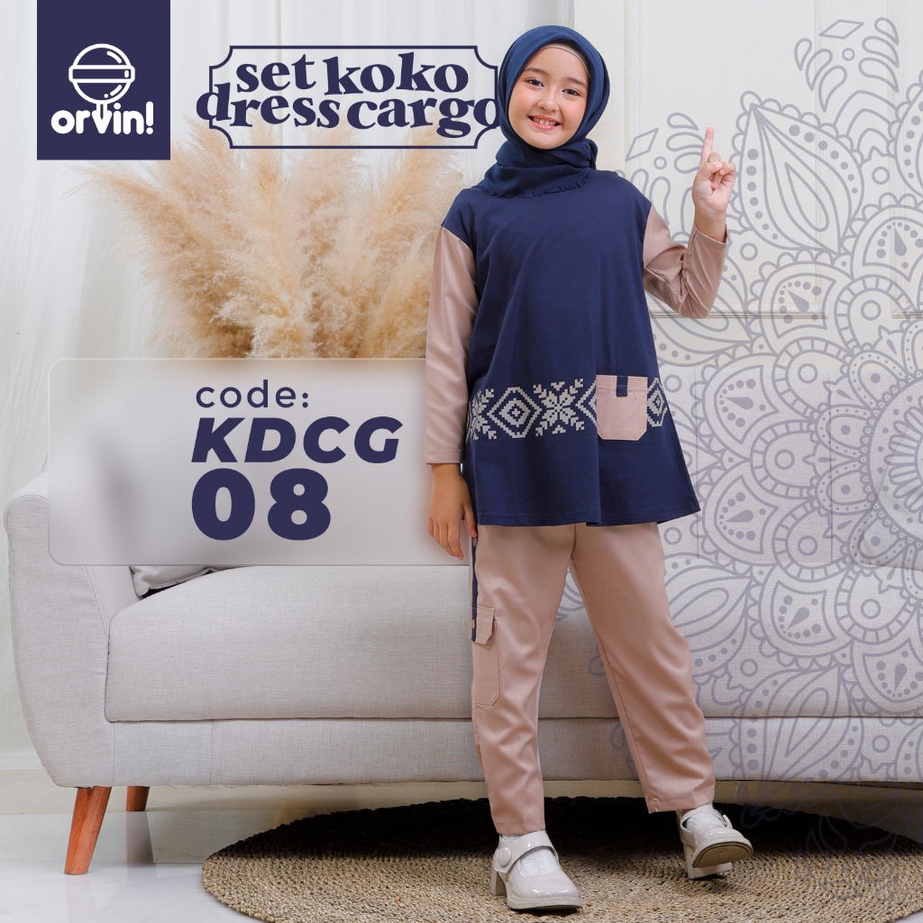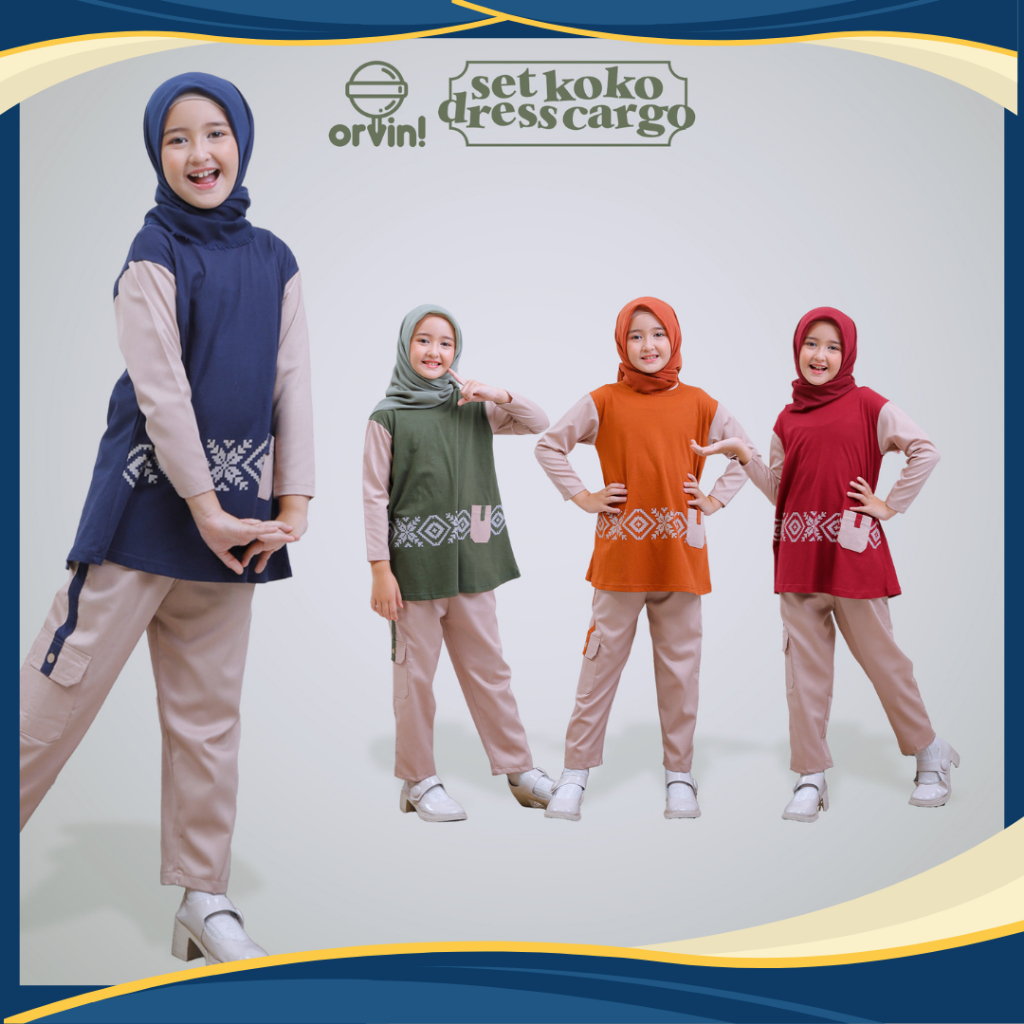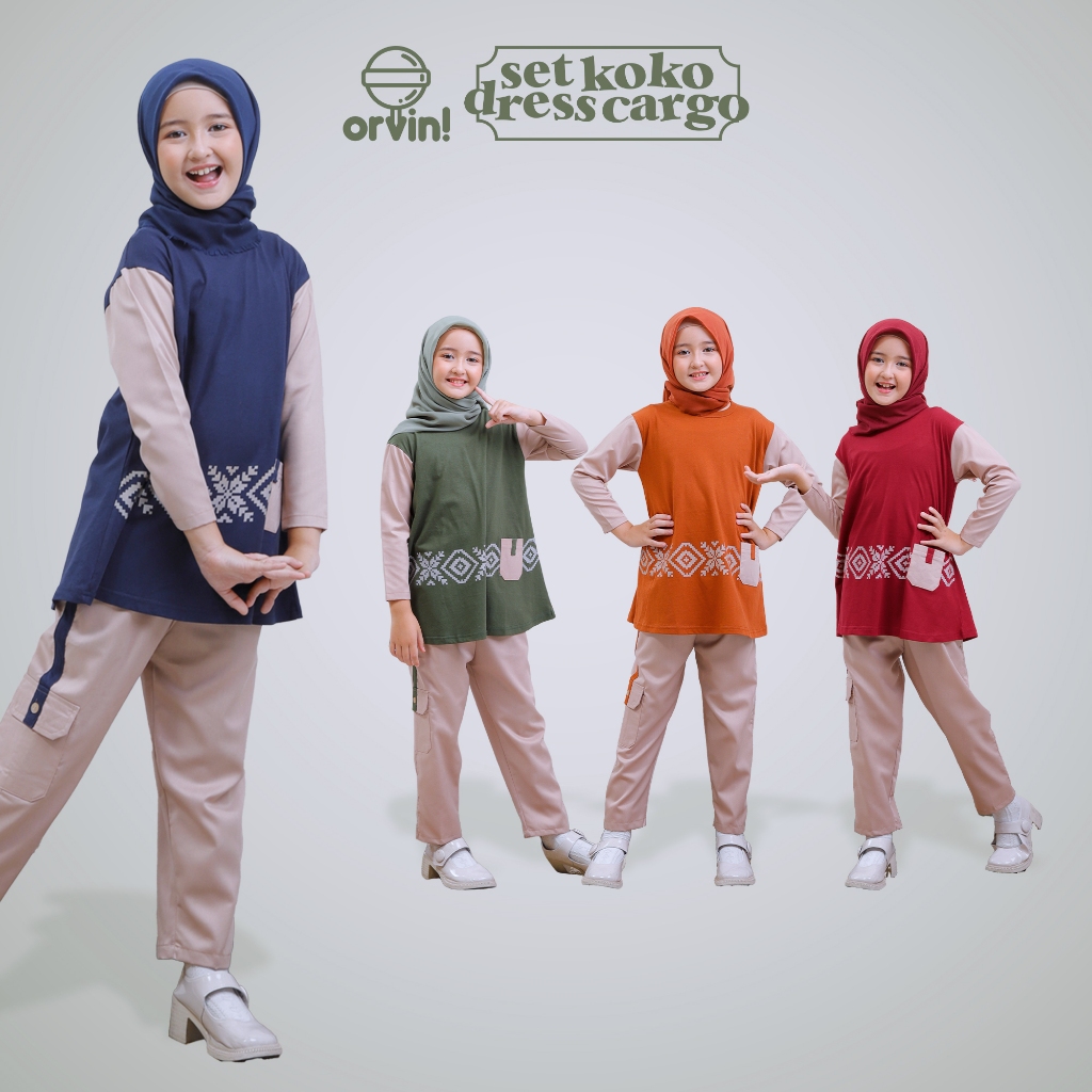 Orvin Kids Setelan Dress + Celana Cargo Casual Muslim Anak Perempuan usia 2 4 6 8 10 Tahun
